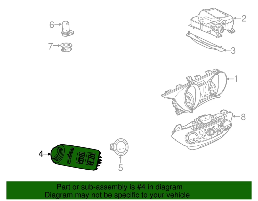 World Parts Direct Genuine GM Jet Black Headlamp Switch 92277023 Part can be found as # 4 in the diagram above Product Description SS. This GM Genuine Part is designed, engineered, and tested to rigorous standards and is backed by General Motors Collision parts are designed to help promote proper and safe repair Specifications Brand GM Manufacturer Part Number 92277023 SKU 92277023 Product Genuine GM Jet Black Headlamp Switch 92277023 ONLY PART REFERENCE #4 ON THE DIAGRAM IS INCLUDED About Us WorldPartsDirect is a small, Texas based business located in the Dallas metroplex. There are about twenty of us that work tirelessly to get you the genuine, OEM parts you need at unbeatable prices. We pride ourselves in top quality customer service and our commitment to be the business we would want to shop with. We have one of the largest inventory networks in the country along with some of the most aggressive discounts. We love cars, and we love what we do! We hope you will love shopping with us , and we always welcome feedback on how we can make your shopping experience even better. Terms and Conditions Compatibility Guarantee (optional free service): Applies when you include your VIN during or before checkout. Simply click "Message to Seller" during checkout and include your VIN with any relevant details (ex: driver/ passenger side). Our fitment experts will confirm compatibility before shipping. If we determine that you purchased an incompatible part, we will correct your order if possible. If we cannot correct your order, we will notify you of the issue (ex: discontinued item) and give you the option to cancel. Part Authenticity and Warranty Guarantee: When you order from us, we guarantee that you will receive a genuine, OEM part. We do not stock anything aftermarket! Our parts are warrantied nationwide for 1 year at every Mopar (Chrysler/Dodge/Jeep/Ram) or General Motors (Chevrolet/Buick/GM/GMC) dealer in the country, depending on the brand of part you ordered. We are able to provide documentation that proves the validity of your purchase from our licensed dealership at anytime upon request. This documentation can be used to redeem this warranty if needed at the dealership of your choice and at no cost to you. Return Policy All of our products can be returned within 30 days. Please open a request for any of these reasons: Doesn't Fit Changed My Mind Found a Better Price Just Didn't Like it Ordered by Mistake The reason you pick has no impact on your refund amount, but it has a big impact on us as a seller. Choosing other reasons may delay the refund per an internal investigation and potential eBay appeal. If a part fails at anytime during the 1 year warranty period, any licensed new car dealership in the country that carries your brand of vehicle will replace the part for free. Simply request our dealer invoice for the part and provide it to your preferred dealer along with the defective part. Home • Newsletter Signup • Contact Us Copyright © 2024 World Parts Direct , All rights reserved. Solution by RevolutionParts, Inc. :: Design by OCDesignsOnline