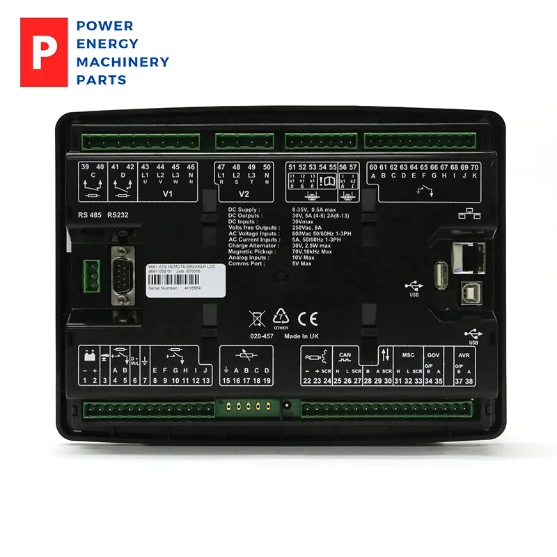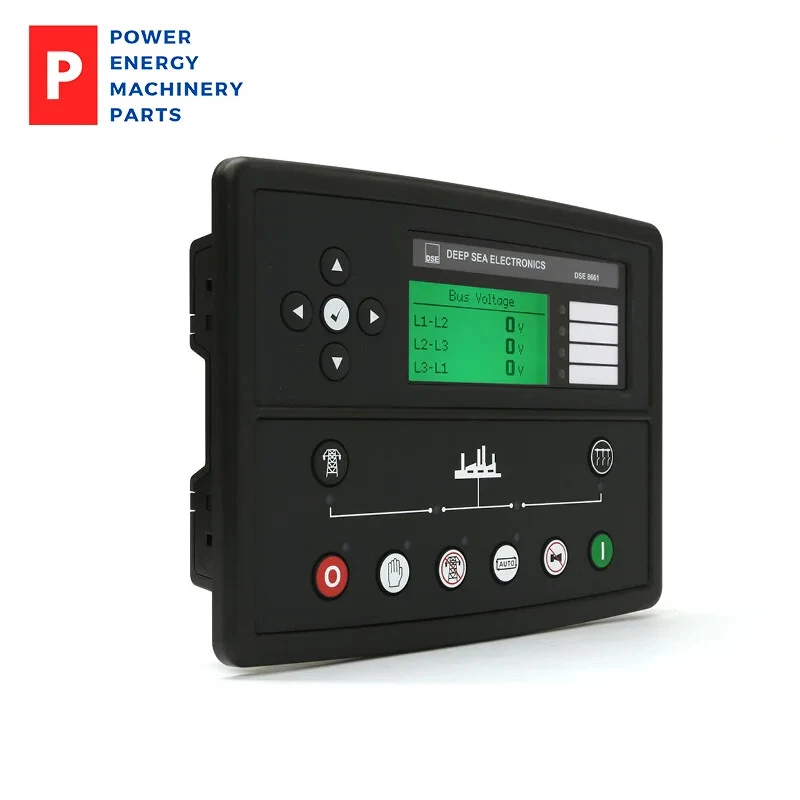 DSE8661 Original Deep Sea Generator Controller DSE 8661 Two-Part Auto Transfer Switch & Mains (Utility) Control Module DSE 8661 Two-Part Auto Transfer Switch & Mains (Utility) Control Module The DSE 8661 is an intelligent two-part mono display single or multi-mains (utility) controller with automatic transfer switch capabilities. The DSE 8661 can be used with remote breakers up to 1.2km apart. The modules synchronise single or multiple set systems in conjunction with DSE synchronising & load share control modules. OVERALL SIZE 240 mm x 181 mm x 42 mm (9.4” x 6.8” x 1.6”) PANEL CUTOUT SIZE 220 mm x 160 mm (8.7" x 6.3") MAXIMUM PANEL THICKNESS 8.0 mm (0.3”) WEIGHT 0.88kg PRODUCT VARIANTS 8661-01 - 8661 Two-Part Auto Transfer Switch & Mains (Utility) Control Module