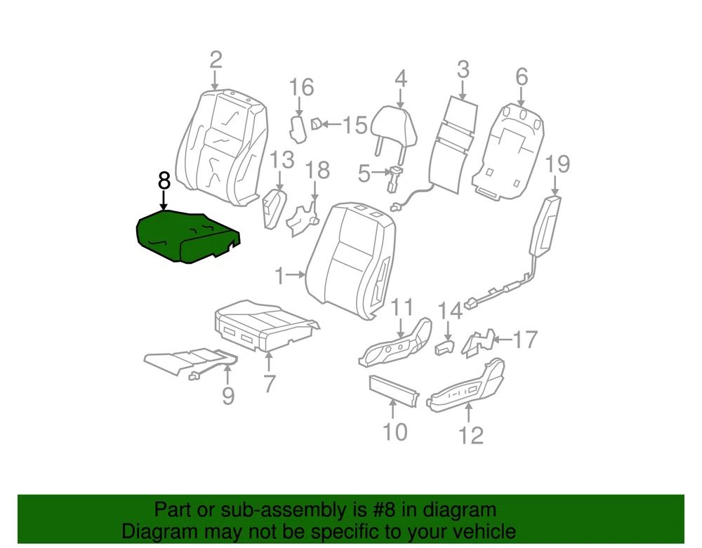 hillcountryhondaparts Genuine Honda Cushion Cover 81531-TA5-A03ZA Part can be found as # 8 in the diagram above Genuine Honda Parts Product Description Without ex-l, us built, lx, black. Specifications Brand Honda Manufacturer Part Number 81531-TA5-A03ZA SKU 81531-TA5-A03ZA Product Genuine Honda Cushion Cover 81531-TA5-A03ZA ONLY PART REFERENCE #8 ON THE DIAGRAM IS INCLUDED WARNING : May cause cancer and reproductive harm. See www.P65Warnings.ca.gov for more info. Thank you for your genuine Honda parts order! Samuel Contreras Hill Country Honda Terms and Conditions Thank you for shopping with us. Please find our policies below. If you have any other questions, please don't hesitate to contact us. Shipping Terms In stock orders ship within 24 hours. Weekend orders will be processed the next business day. If a part is not in stock and must be ordered from the manufacturer, it usually takes 2-3 days to arrive to us and will be promptly shipped to you. Most of the orders are shipped complete within 2-3 business days. A few of the parts ordered from the manufacturer may take up to 5-6 business days to arrive and will shipped to you immediately. Depending upon location, ground shipments usually take 2-7 days. Your order may be shipped Overnight for an additional cost. Oversized shipments will be additional; you will be contacted prior to shipping for approval. We cannot guarantee transit times for ground and oversize orders. Shipping Carrier substitutions may be made at our determination in an attempt to reduce shipping cost to the customer. We do not ship internationally. In the unlikely event that a part has been placed on backorder or discontinued, we will do our best to try and find one for you as quickly as possible. We do not ship COD orders. Return Policy Contact us to arrange for any returns. A copy of the invoice will need to be included with the return. Parts must be resaleable and in the original packaging. We cannot take back used parts. We cannot take back installed or tried parts. Electrical parts are not returnable. We do reserve the right to refuse and return any parts we find have been installed, are used or do not meet the above criteria. Return request need to be within 30 days of receipt. Cancellation Policy An order or a portion of an order may be cancelled up until the time it is shipped and no longer in our possession. Home • Newsletter Signup • Contact Us Copyright © 2024 hillcountryhondaparts , All rights reserved. Solution by RevolutionParts, Inc. :: Design by OCDesignsOnline