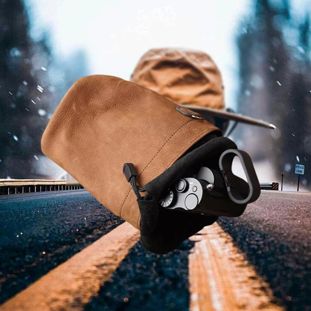 Features: 1. Made by high quality cow leather, the matt surface is full of texture to make your camera fashion and retro 2. Three different size for different camera model. S: 65*95*150mm M: 110*125*165mm L: 115*150*195mm 3. There is a hidden zipper on the side of the package, which makes it easy to put some small accessories without affecting the overall appearance. 4. Each bag will comes with a black buckle. 5. Soft fibre lining protects the camera 6. There is a ring on the side of the S/M size bag, 2 ring with the L size bag. Fits for: S: 65*95*150mm Fit for portable telescopic lens or lightweight camera Such as Sony RX100 Ricoh GR Fuji X100T Canon G12 Leica D-LUX Series M: 110*125*165mm Fits for most of ILDC(Interchangeable Lens Digital Camera )such as Leica M series Q X-E X M240-P M-P M-M M-E M8 M9 XV M3 M4 M5 M6 M7 Sony RX1 RX1R A6000 NEX Fuji X-T1 X-PRO X-E2X-T10 Olympus OMD EPL etc. L: 115*150*195mm Fits for the larger lenses Medium-sized camera and most DSLT(Digital Single Lens Translucent Camera)with lenses such as A7 A7R A7S A7RII A7SII A7III A9 Package Included: 1* Genuine Leather Camera case