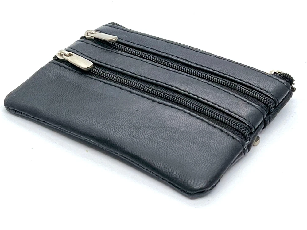 Feature: Condition: New Material: Genuine Leather Zippered Compartments 1 key ring Size: 5" x 3" Estimated