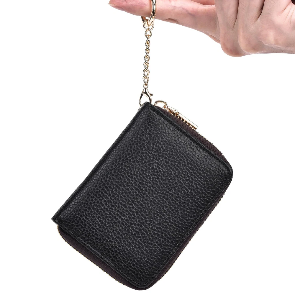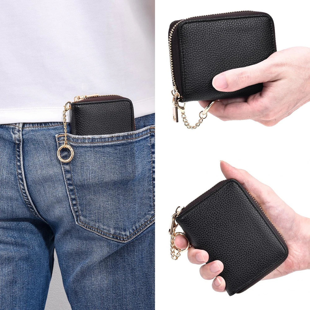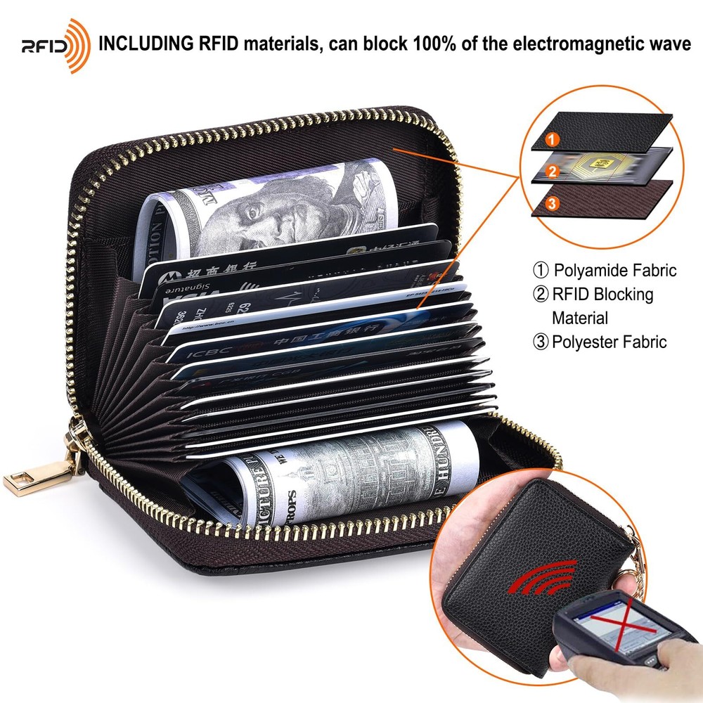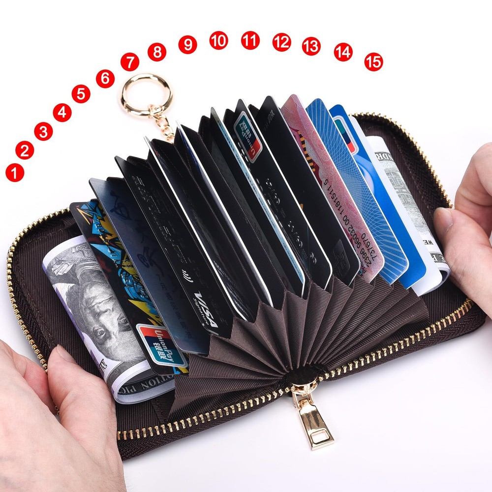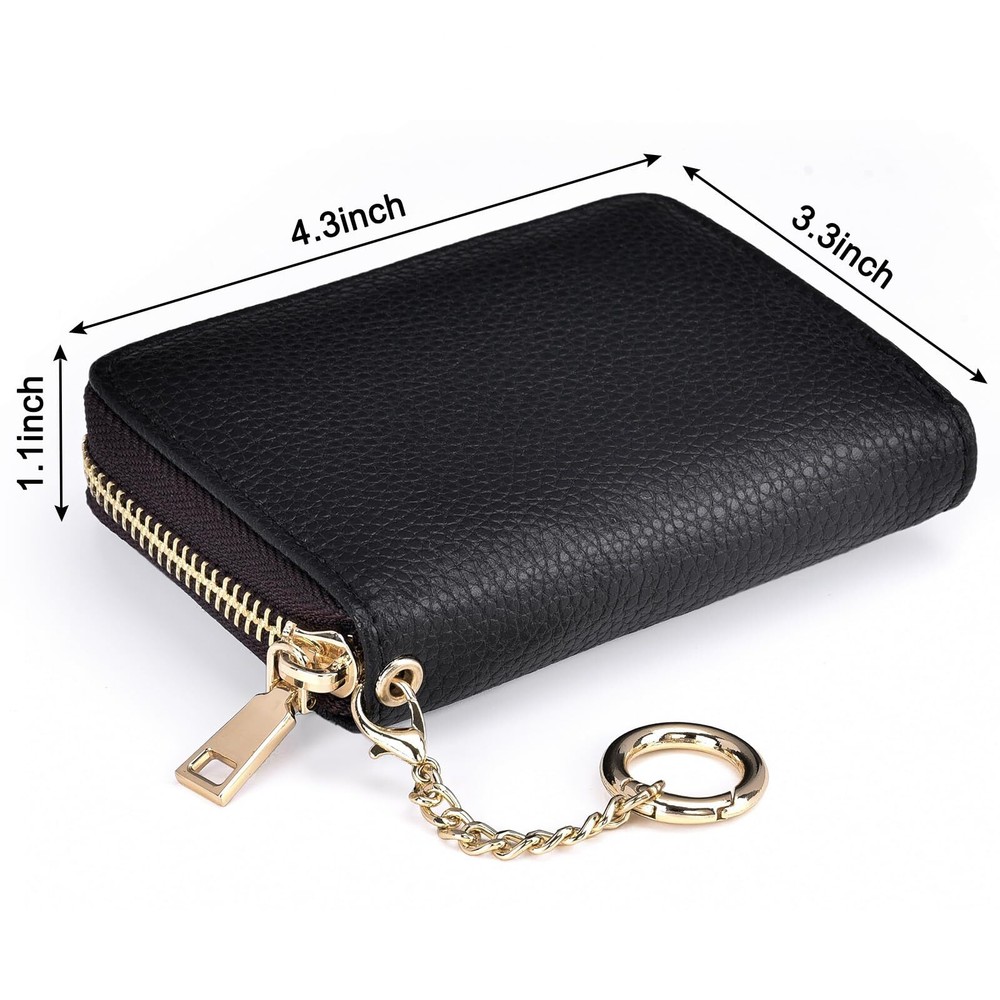 【Protable and Compact】Keep your cards organized and easily accessible with this slim credit card holder for women. Measuring just 4.2 x 3 x 0.9 inches and weighing only 2 ounces, it's the perfect size to fit in your pocket or purse. Plus, it comes with an extra key chain for easy carrying when you're on the go. 【Plenty of Space】With 12 card slots and 2 extra-wide slots for bills, folded cash, and receipts, this compact card holder wallet has plenty of room for all your essentials. It's designed to hold credit cards, business cards, ID cards, metro cards, driver's licenses, shopping cards, and more. 【RFID Blocking Protector】Protect your sensitive information with advanced RFID blocking technology. This RFID credit card wallet blocks unwanted RFID readers from accessing your credit card and ID information, ensuring your privacy and security. 【Genuine Leather】Made of leather, this credit card holder is both durable and stylish. The leather is smooth, anti-fray, and soft to the touch, and it will only get more beautiful with time and use. Each wallet is individually hand-stitched for added durability. 【Great Gift】This cute small zipper wallet makes a great gift for any occasion. With its unique design and multiple styles to choose from, including boho, floral, marble, and modern abstract art, it's the perfect gift for Valentine's Day, Mother's Day, Father's Day, Thanksgiving, or any other special occasion.