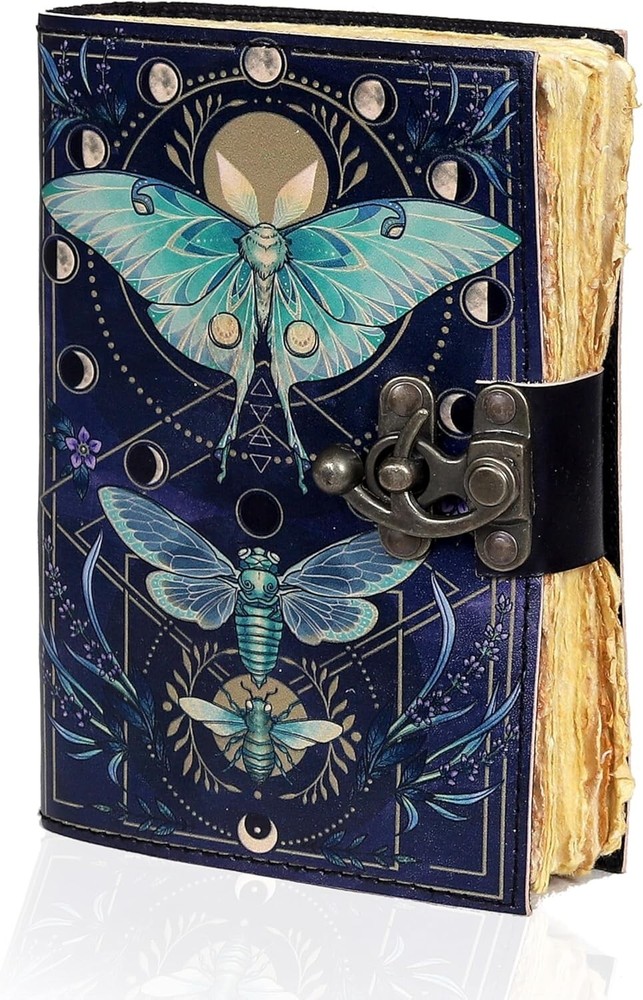 BEAUTIFULLY CRAFTED: Our handmade artisan leatherbound spellbook grimoire journals are crafted from genuine leather. The black colouring gives it a beautiful antique vintage feel. Being hand-made from natural leather. The cover features a beautiful gold designing.. IDEAL SIZE & THICK PAPER: Compact 7"X5" size , easy to carry around or slip into a bag; and not so small that you can’t express any creativity - 240 pages of smooth craft paper allowing the pen to glide effortlessly across the page PERFECT FOR GIVING: Suitable for both men or women to write in, this locking diary daily travelers notebook is perfect for an avid writer, or Harry Potter fan looking for a magic spell book. Ideal to give as a birthday gift, valentines, halloween, graduation or wedding anniversary present. MANY USES - This aesthetic Lovers Journal Can be used as a Hocus Pocus gifts , the lovers tarot journal, gothic notebook, skull journal, spell books halloween decorations, book of spells halloween decor. grimoire spell book, drawing or sketching and compact for carrying in your bag. Ideal for alternative Artist Sketchbooks, Photo Album, Traveling Notes, Business Executive, Logbook, hocus pocus spell book , Journalists, Food Planner, old spell notebook, antique handmade skull journal