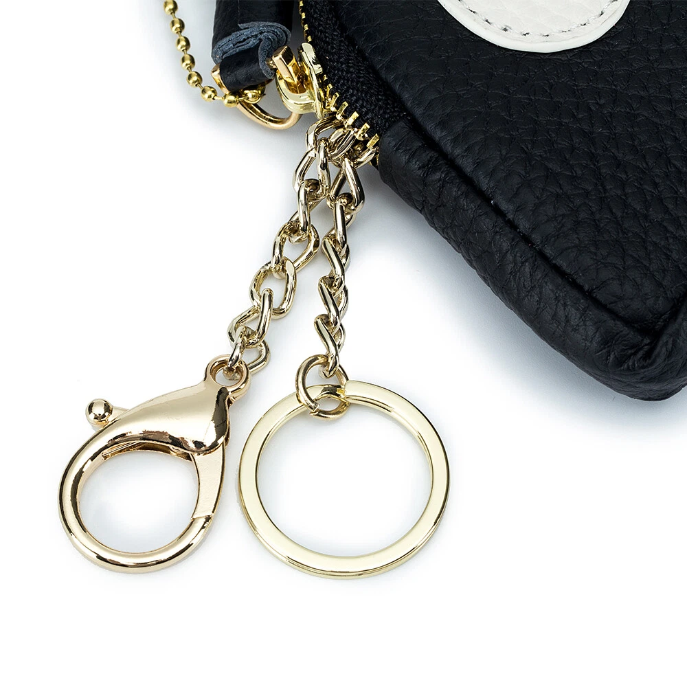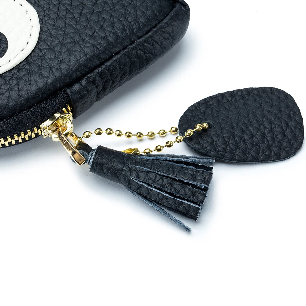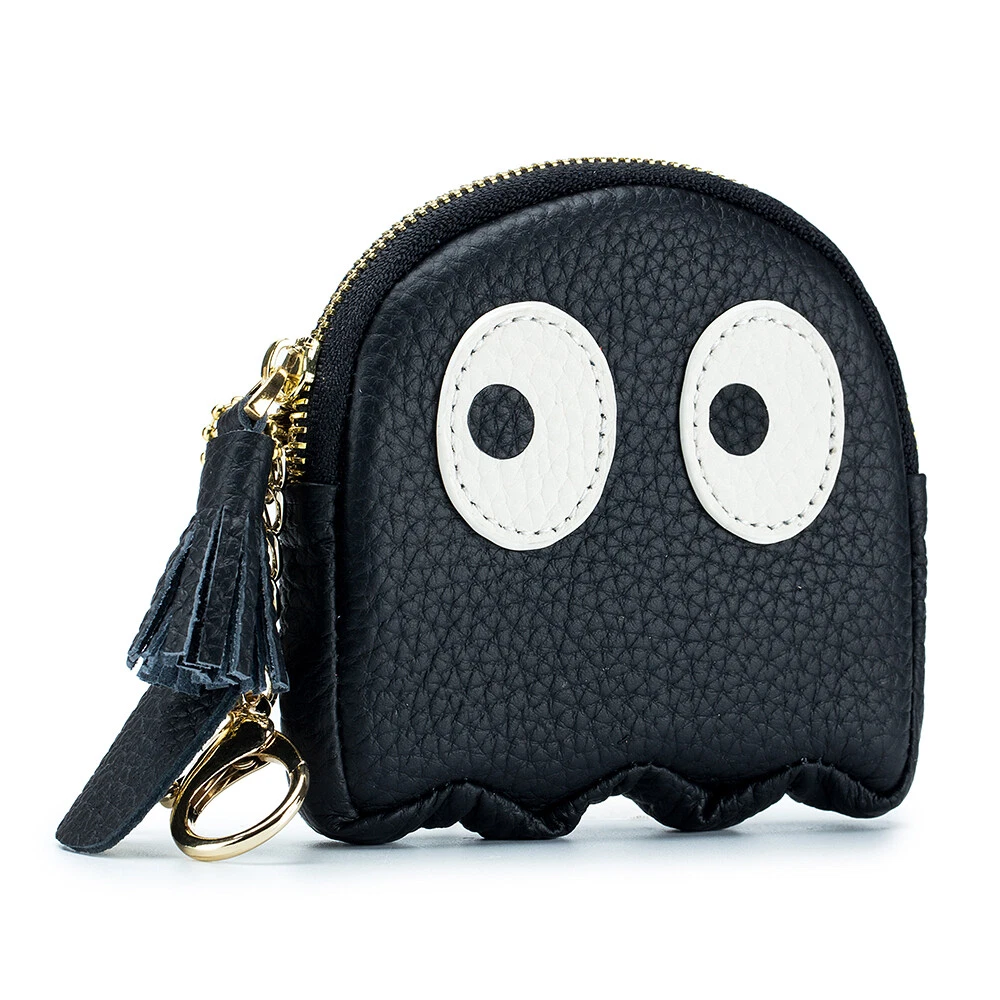 Reliable Quality: Top cowhide genuine leather soft to touch and easy to clean up, purely handmade. Professional Design: Small size 10*10*1.5cm and the weight is about 64g. Deft Design: 1 main pocket, 1 card slot,2 key chains, you can arrange credit card, driver's license, bank card, cash, change, lipstick, keys, etc. Attractive Design: Lovely cartoon ghost shape design. Reliable Reputation: If you are not satisfied with our product or service for any reason, please contact us, we will resolve it.
