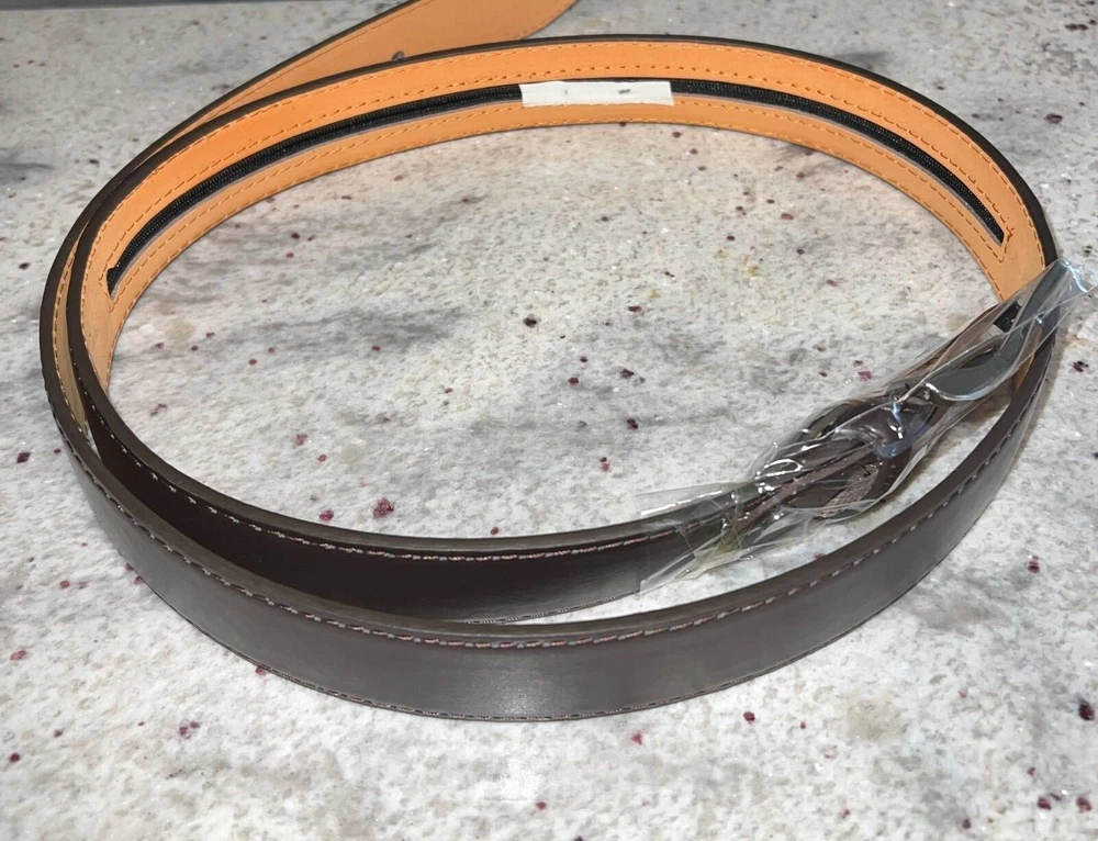 The zipper size inside the belt is about 14 inch long ! Men's Genuine Leather Metal Buckle Jean Casual Dress Belt with super light weight, and sustainable materials. Secret Pocket, Zipper Inside, Stylish Buckle, Money Compartment, Safe belt, Hide cash Featuring our newest high quality genuine leather casual belt, 4 Sizes :S. M .L .XL .XXL ,1.1/4 Inch Wide Color Available: Dark Brown Product Description: The perfect gifting option for any occasion, including but not limited to, birthdays, anniversaries, and Christmas! Purchase one (or more) today and bring a smile to your own (or someone else’s) face! A Genuine Leather Money belt. 1.1/4" inch-wide belt standard width for all dressy and casual belt loops not too wide or narrow. Smooth sleek sturdy leather belt with straight accurate stitching and 5 holes in the belt in right placement. Brushed silver finish scratch-resistant buckle is sturdy enough to hold up your pants. It's a good stylish leather belt. Very hard to find belt. A REALLY GREAT BUY. Genuine Leather 1.1/4-inch-wide belt Zipper pocket Safe & Secure Perfect for travelling Belt Size :S M L XL XXL Smooth sleek sturdy leather belt 5 holes in the belt in right placement Brushed silver finish scratch-resistant buckle Makes a great gift