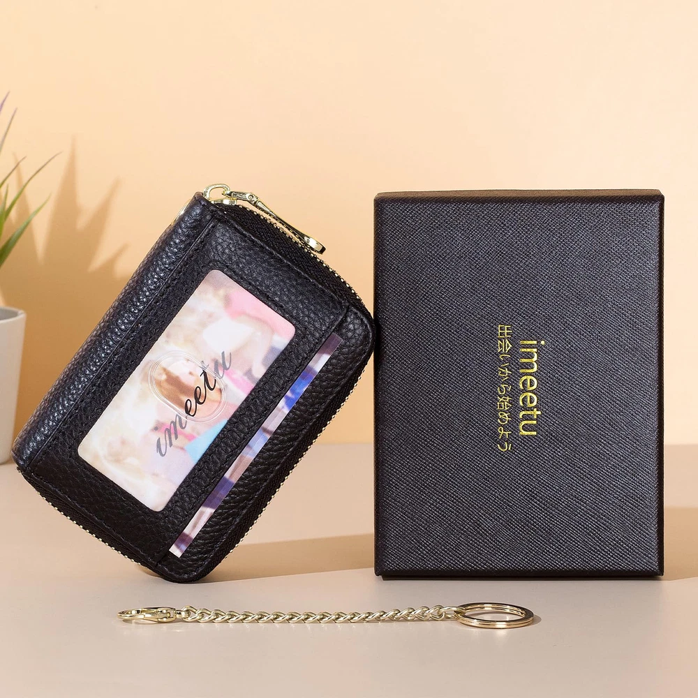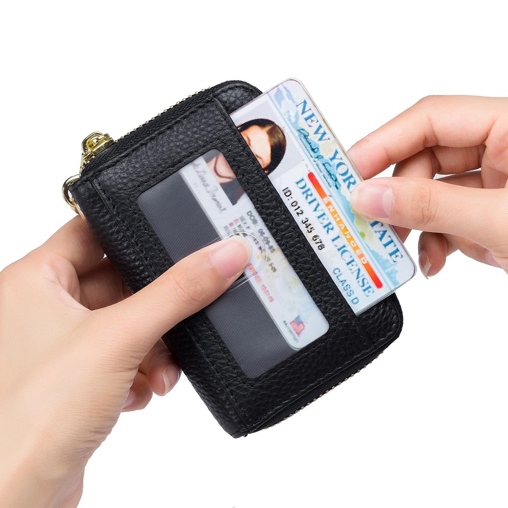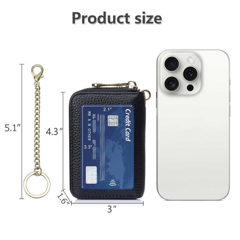 This RFID-blocking card holder is perfect for daily use! The genuine leather feels premium and sturdy, while the detachable keychain adds versatility. Love the clear ID window for quick access and the multiple compartments—it neatly organizes cards, cash, and even coins. The zippered pocket keeps everything secure, and the RFID protection is a great bonus. Highly functional and stylish!
