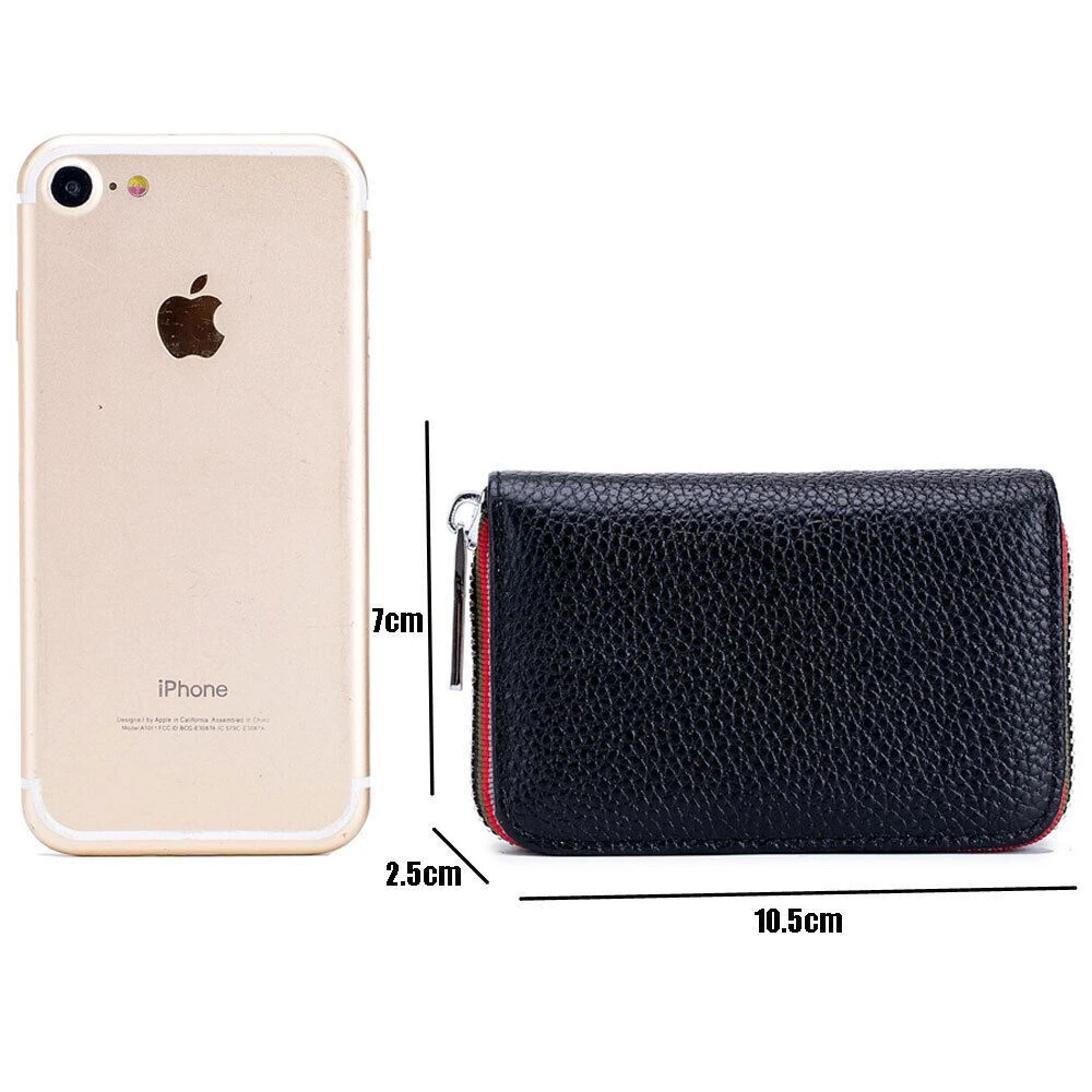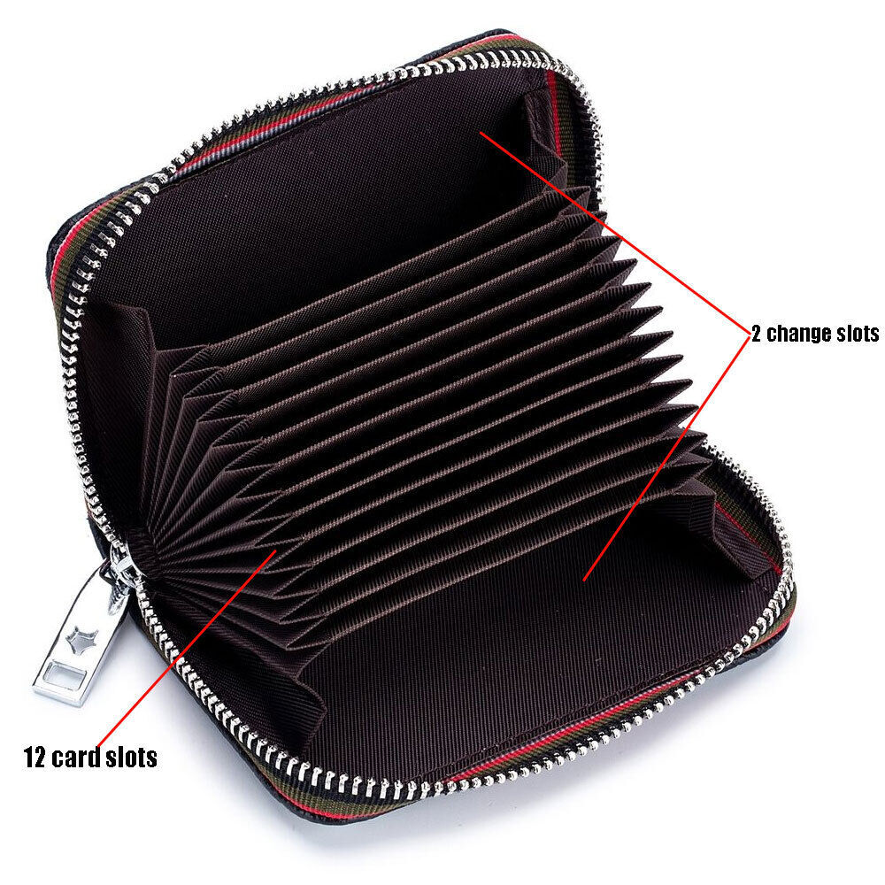 About this item Zipper closure.it is RFID protected for security 【Material】Genuine Leather,Fabric lining,accordion style wallets 【Dimensions】4.33"L x 2.95"W x 0.98"H,the little leather card case holds at least a dozen cards 【Multi-slots】the card wallet has 12 card slots with 2 larger spaces for bills, more cards or receipts 【RFID blocking layer】it is rfid blocking ,2 outer layers RFID blocking materials ,Be Safe and Protected from Electronic Pick Pocketing 【Service】We are committed to creating exquisite services, any questions, please contact us , we will solve the problem for you in 24 hours