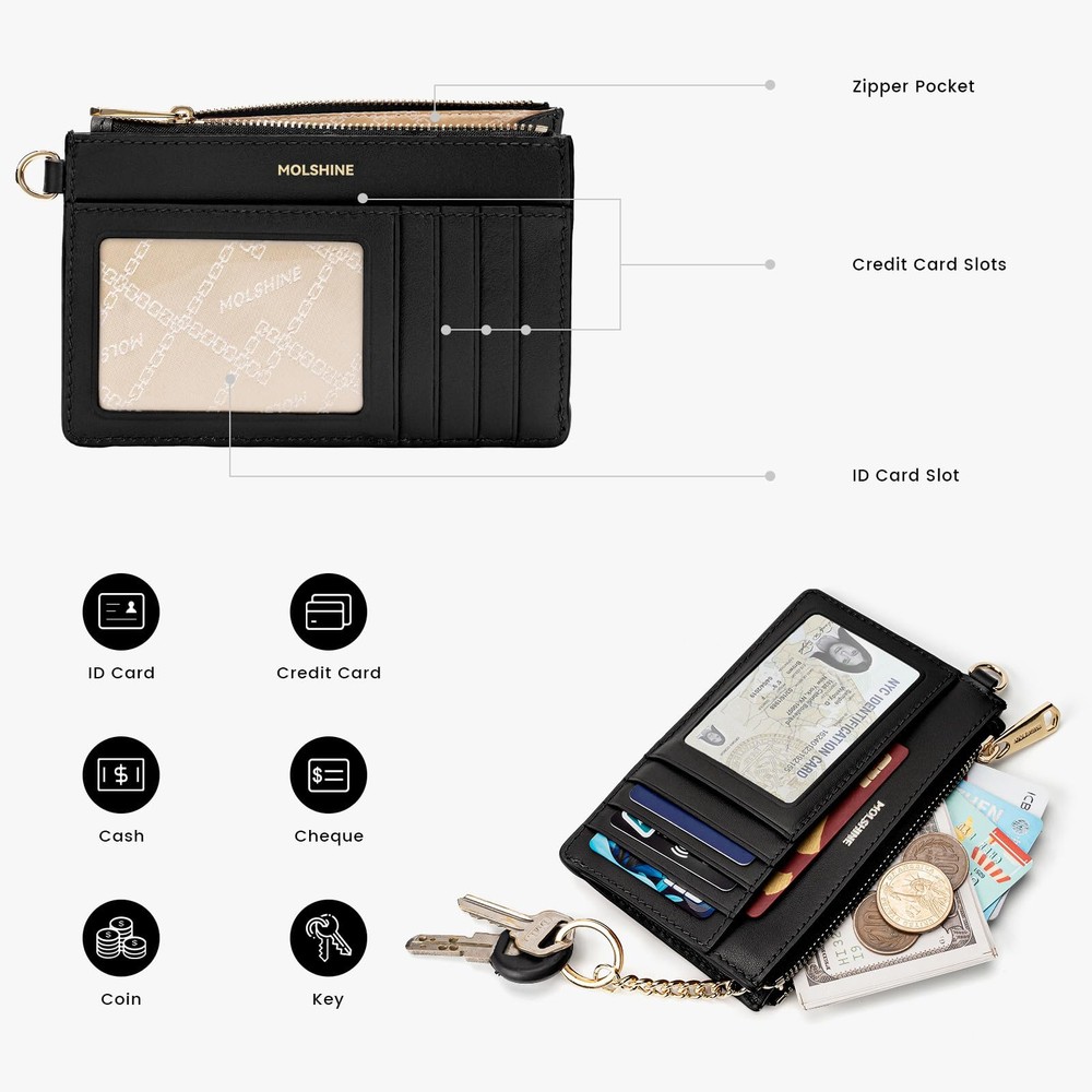 Premium Leather:This coin card holder is made of genuine leather, which is smooth, delicate and odor-free. The edges are sealed with paint edge technology, and the lining material is nylon and quilted, which is wear-resistant and durable. First-class craftsmanship and exquisite appearance bring you the ultimate feeling. Large Capacity:The closed size is: L14.7 x W9.5 x H1.9 cm / 5.79 x 3.74 x 0.75 inches.This coin card purse is spacious and has plenty of storage space, and it can be placed in a clutch or tucked into a pocket for easy portability. Unique Design: It has 3 credit card slots, 1 ID card slot, 1 zip coin pocket, space to keep you organized. The metal hardware of this coin card holder has been carefully selected and features a dog clip and brass tooth zipper for durability and sophistication. Applicable people:This practical and exquisite coin card holder is suitable for both men and women. This is the best gift for all holidays such as Valentine's Day, birthdays, anniversaries, Christmas, bar mitzvahs and graduations.
