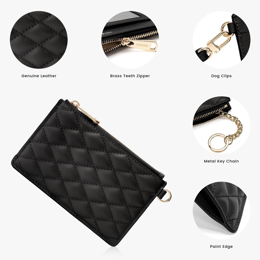 This slim leather coin purse is a stylish and practical must-have! The premium genuine leather feels luxurious and durable, while the RFID blocking keeps your cards safe. Despite its compact size, it holds plenty—coins, cards, and even fits easily into a clutch or pocket. The quilted design adds a chic touch, and the smooth edges show excellent craftsmanship. Perfect for everyday use or travel, it’s both functional and elegant. Love how lightweight it is without sacrificing quality! Highly recommend for anyone needing a sleek, secure wallet alternative.