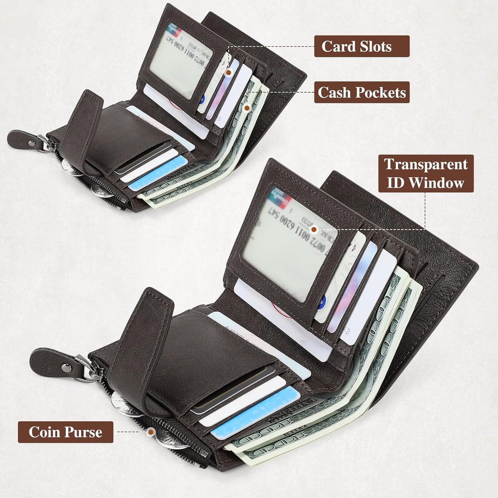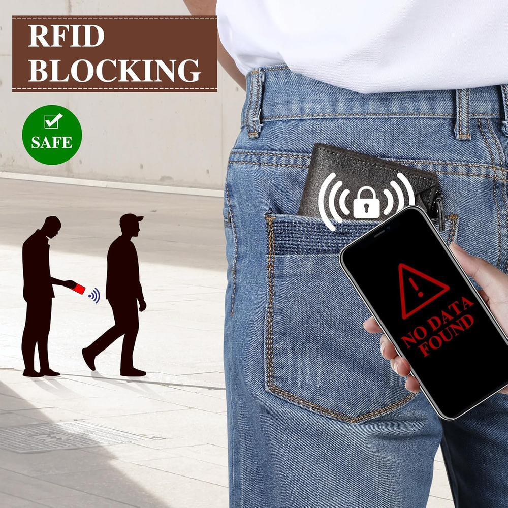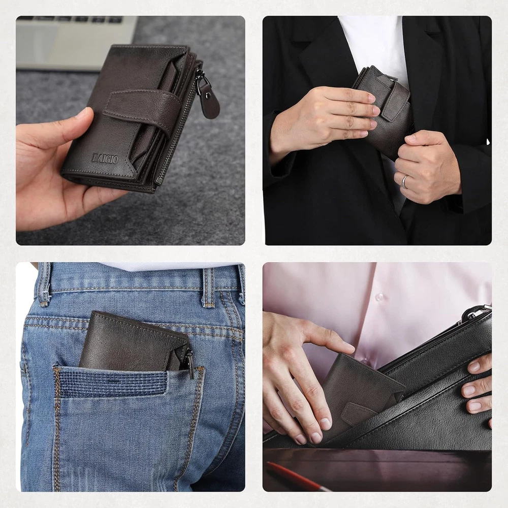 This genuine leather wallet is a perfect blend of style and functionality. The premium cowhide gives it a durable yet elegant look, while the RFID blocking tech keeps your cards safe from scans. The zipper design adds extra security, and the bifold layout keeps everything organized. Great quality and a must-have for any man looking for a sleek, secure wallet!