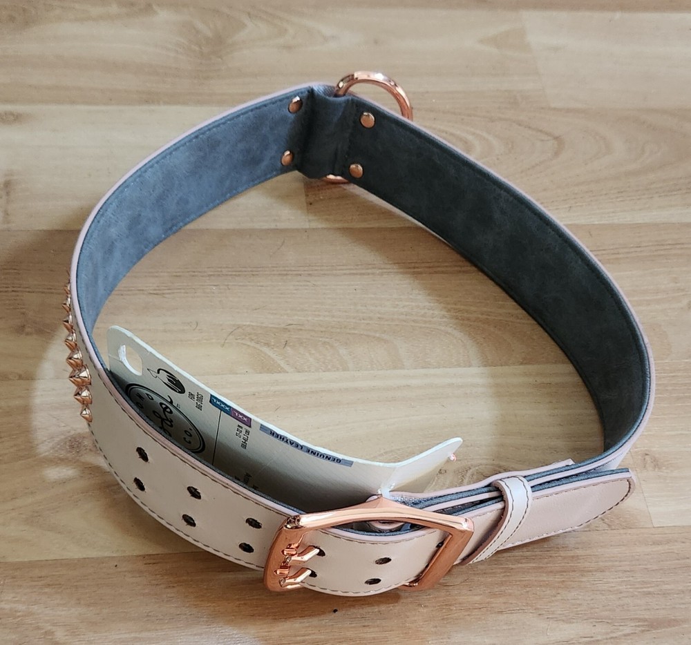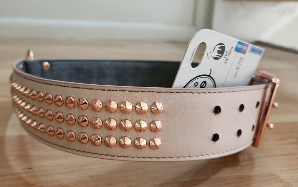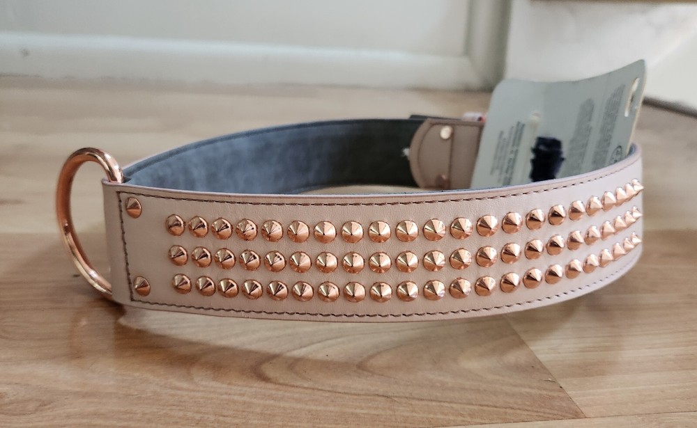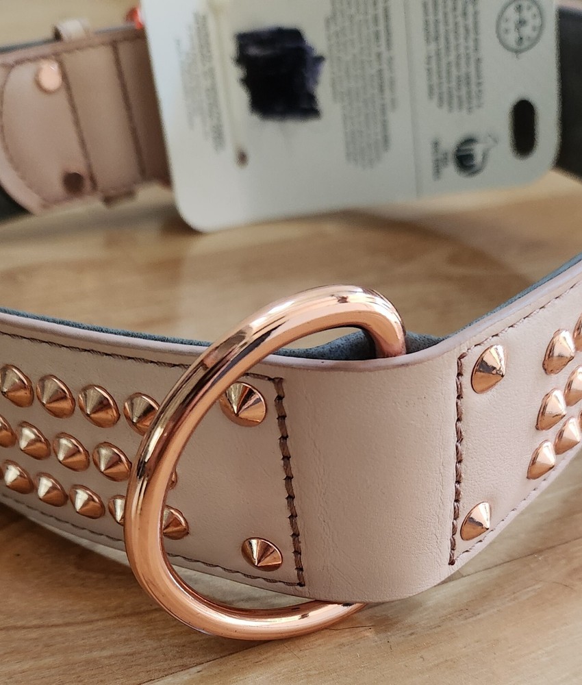 Brand new with tags. XXL genuine leather studded dog collar. Buckle. Pink with rose gold hardware