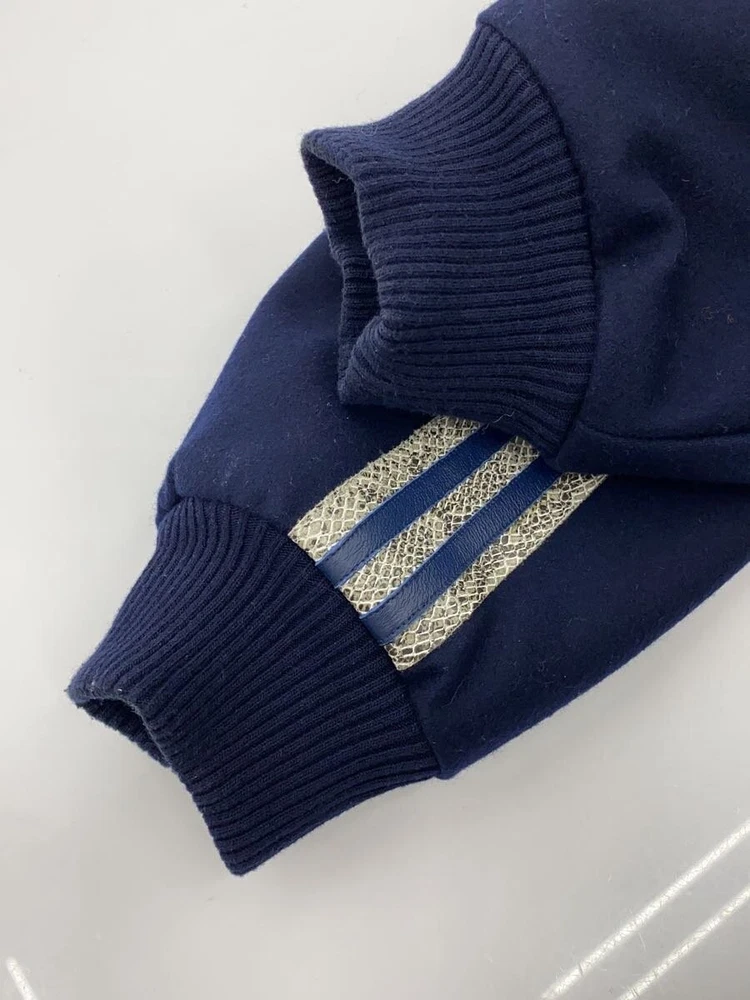 This jacket is absolutely stunning! The leather feels luxurious, the navy color is rich, and the fit is perfect. Arrived quickly and well-packaged. Highly recommend this seller!