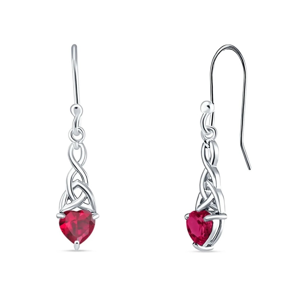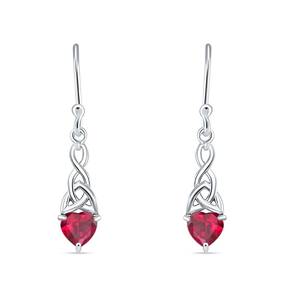 Heart Shape Ruby Celtic Trinity Earrings Beautifully set in Solid Sterling Silver Will never tarnish. .90 ct. (17.7" height) Encased in a beautiful gift box with bow. All Sterling Silver in this piece is Rhodium plated and will never turn color. Listing and template services provided by inkFrog Shipping We ship next day. All items purchased on Friday will ship Monday (unless a holiday). Items can take longer than (Ebay time frame is generous). You can upgrade to Priority Ship (2-3 day delivery). Returns We have a 30 day no questions asked return policy. No RMA needed. All items and parts must be returned including packaging (gift box). Please include your user name and item number. We reserve the right to include a restocking fee. No upgraded shipping will be refunded.