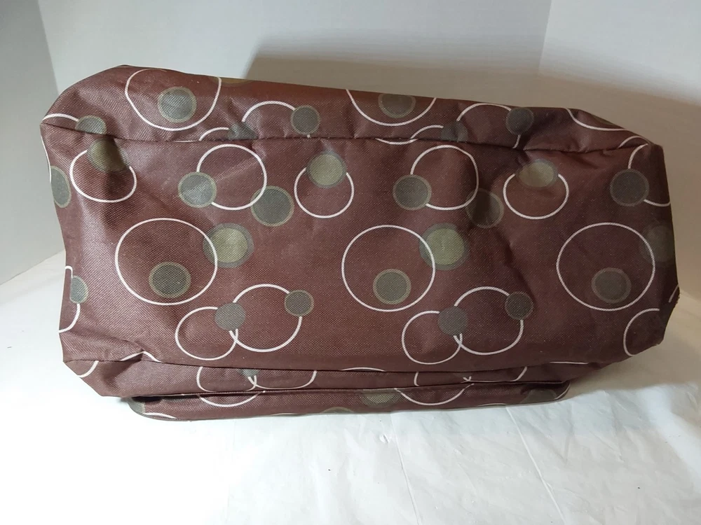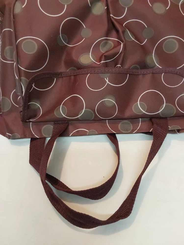 This travel tote is perfect for carrying on your essentials while on the go. Its geometric brown canvas design adds a stylish touch to your luggage collection. Whether you're heading to the pool, beach, or just need a reliable diaper bag, this tote has got you covered. Its durable material ensures longevity and its ample size allows for storing all your necessities with ease. The tote features a variety of aspects such as its pattern, type, color, and material, making it a versatile addition to your travel gear. Its carry-on feature allows for easy transportation and quick access to your items. This tote is a must-have for any traveler looking for a stylish and practical bag to accompany them on their adventures.