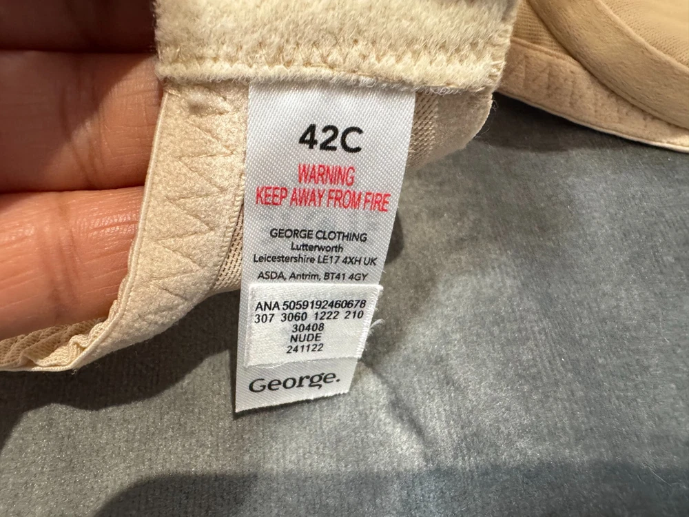 This George Bra T-Shirt Bra in size 42C is a comfortable and supportive undergarment for women. With underwire and padded cups, it offers full coverage and a bra strap closure. The hook and eye closure makes it easy to put on and take off, and it is machine washable for easy care. The beige colour and opaque fabric make it a versatile addition to any lingerie collection. This T-Shirt Bra is perfect for wearing under low-cut tops or dresses, and it is made in China with high-quality materials.