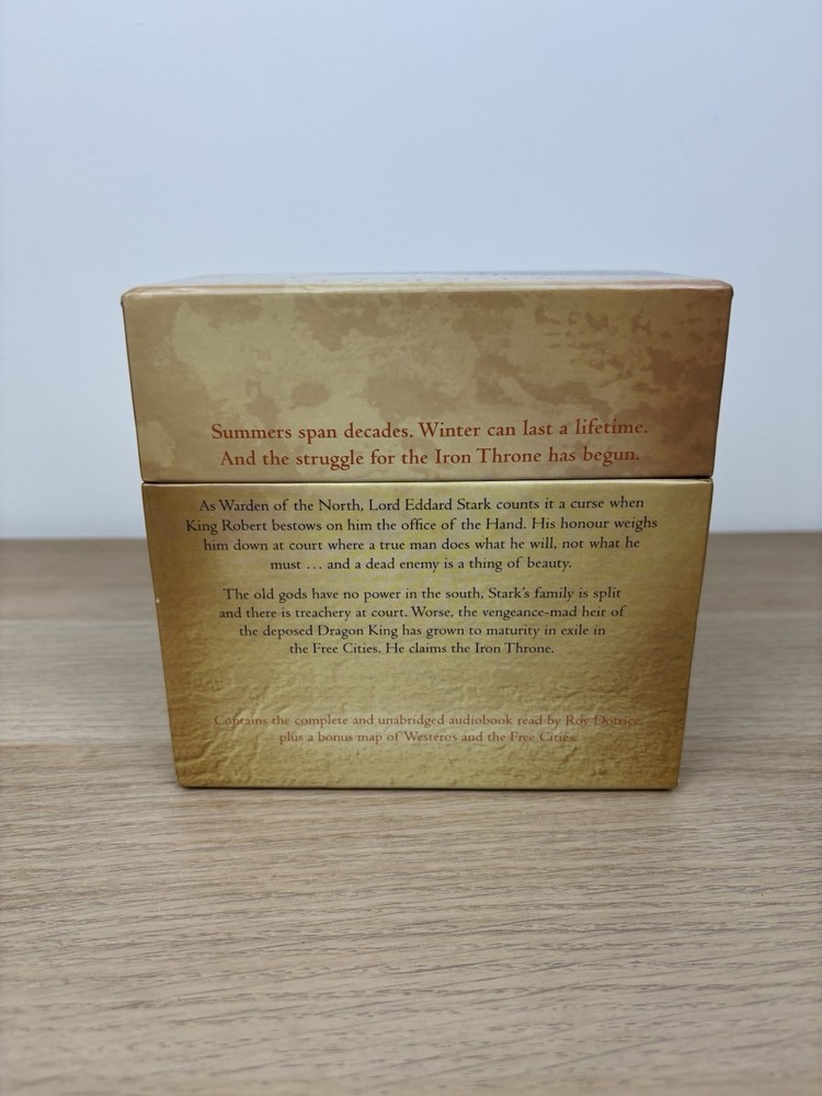 Type:AudiobookSigned:NoAuthor:George R.R. MartinISBN:N/AFormat:Audio CDPersonalised:Nogtin13:N/ABook Series:A Song of Ice and FireNarrative Type:FictionPublication Year:2015Book Title:A Game of ThronesGenre:FantasyCountry/Region of Manufacture:United KingdomPublisher:HarperCollinsLanguage:EnglishTopic:GamesNarrator:ROY DOTRICE