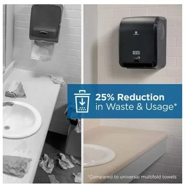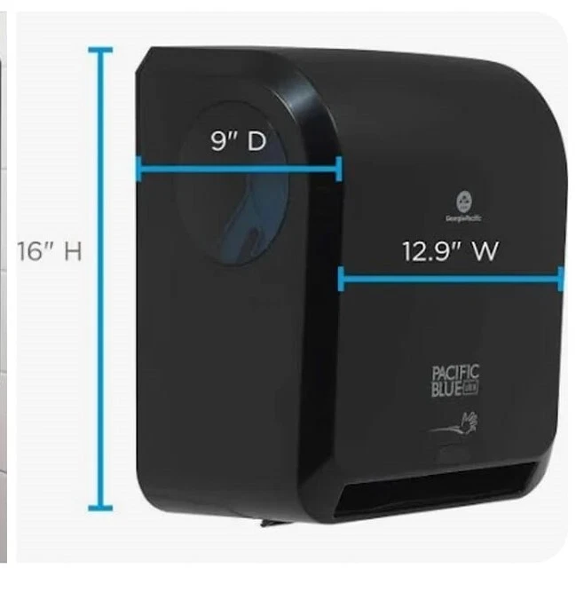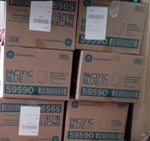 Brand new in box. I have a total of ten. Buy one or buy all. Georgia Pacific, Pacific Blue, Model 59590 HIGH CAPACITY 1150-ft towel rolls last longer; helping to require less maintenance and minimize refill frequency ENHANCED IMAGE with attractive dispenser design that coordinates with other Pacific Blue dispensers EASY TO REFILL wall mounted towel dispenser designed with easy-access front cover that opens 180° DURABLE DISPENSER that protects against theft with a key lock and is backed by a 10-year warranty FLEXIBLE REFILL OPTIONS Choose between white or brown paper towels and 3-Roll or 6-Roll cases COMPATIBLE WITH Pacific Blue Ultra Roll Paper Towels 26490; 26491; 26495; 26496