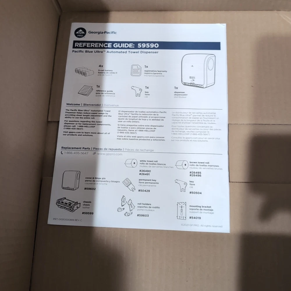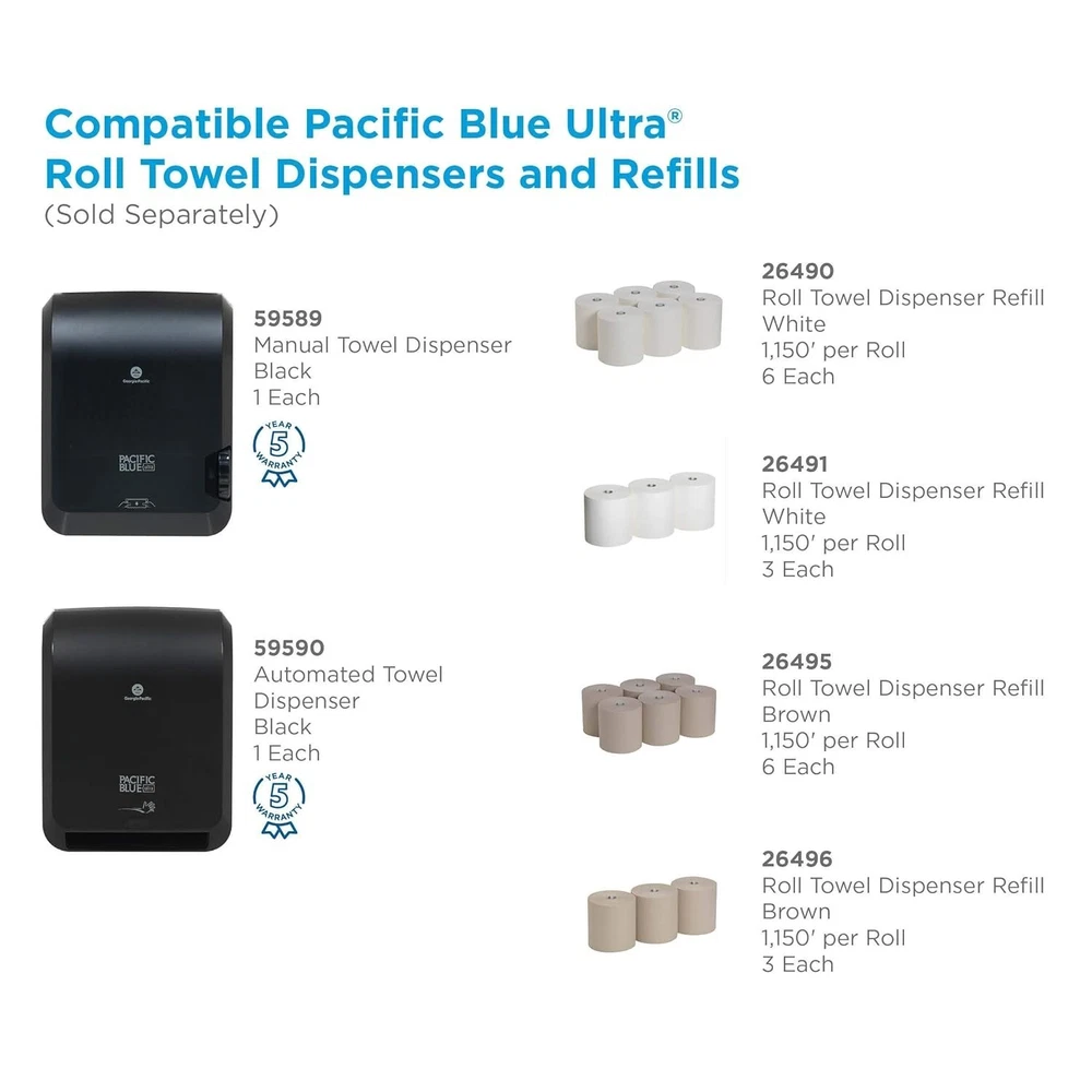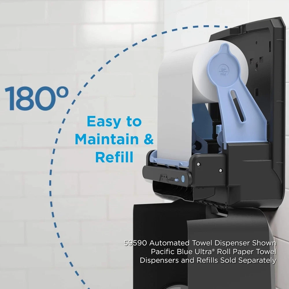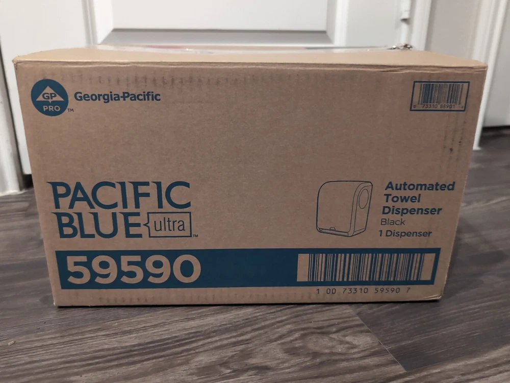 Material Plastic Color Black Brand Georgia-Pacific Mounting Type Wall Mount Item Weight 9 Pounds Product Dimensions 16"L x 12.9"W Number of Items 1 UPC 073310595900 042000640503 Global Trade Identification Number About this item HIGH CAPACITY 1150-ft towel rolls last longer; helping to require less maintenance and minimize refill frequency ENHANCED IMAGE with attractive dispenser design that coordinates with other Pacific Blue dispensers EASY TO REFILL wall mounted towel dispenser designed with FLEXIBLE REFILL OPTIONS Choose between white or brown paper towels and 3-Roll or 6-Roll cases COMPATIBLE WITH Pacific Blue Ultra Roll Paper Towels 26490; 26491; 26495; 26496 00073310595900, 10073310595907 Manufacturer Georgia-Pacific
