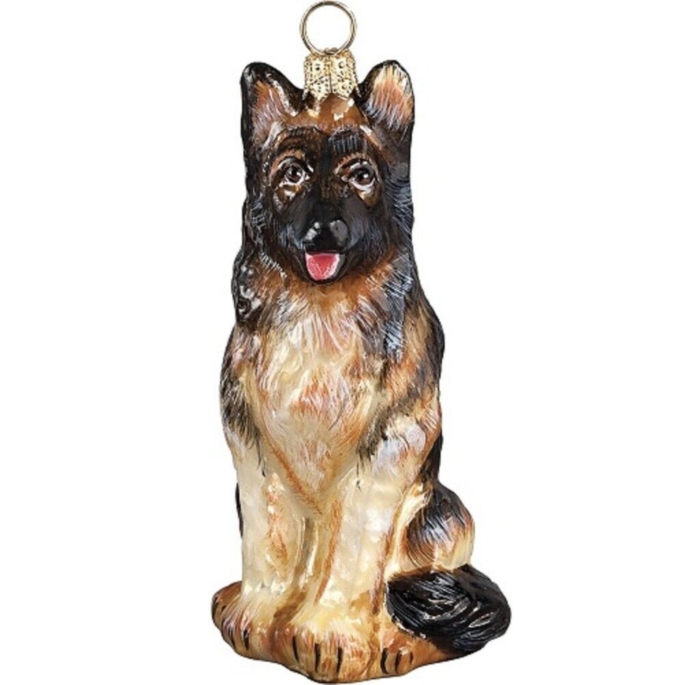 German Shepherd Dog Polish Blown Glass Christmas Ornament Holiday Decoration PRODUCT DESCRIPTION Polish Glass Dog Christmas Ornament. Each ornament is handpainted with intricate breed details by Polish artisans in mouth-blown glass. Approximately 3.75 inches tall (9.5 cm). Made in Poland. Made from glass. Arrives in a gloss gift box ideal for gift giving or storing. © Copyright . All rights reserved.