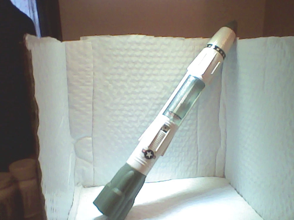 One large rolling thunder missile / glass in very nice shape good sticker placement which is seeing pics is what you get thank you for looking you will receive it in two parts had to take off bottom booster for shipping all tabs good no stress should easily go back together
