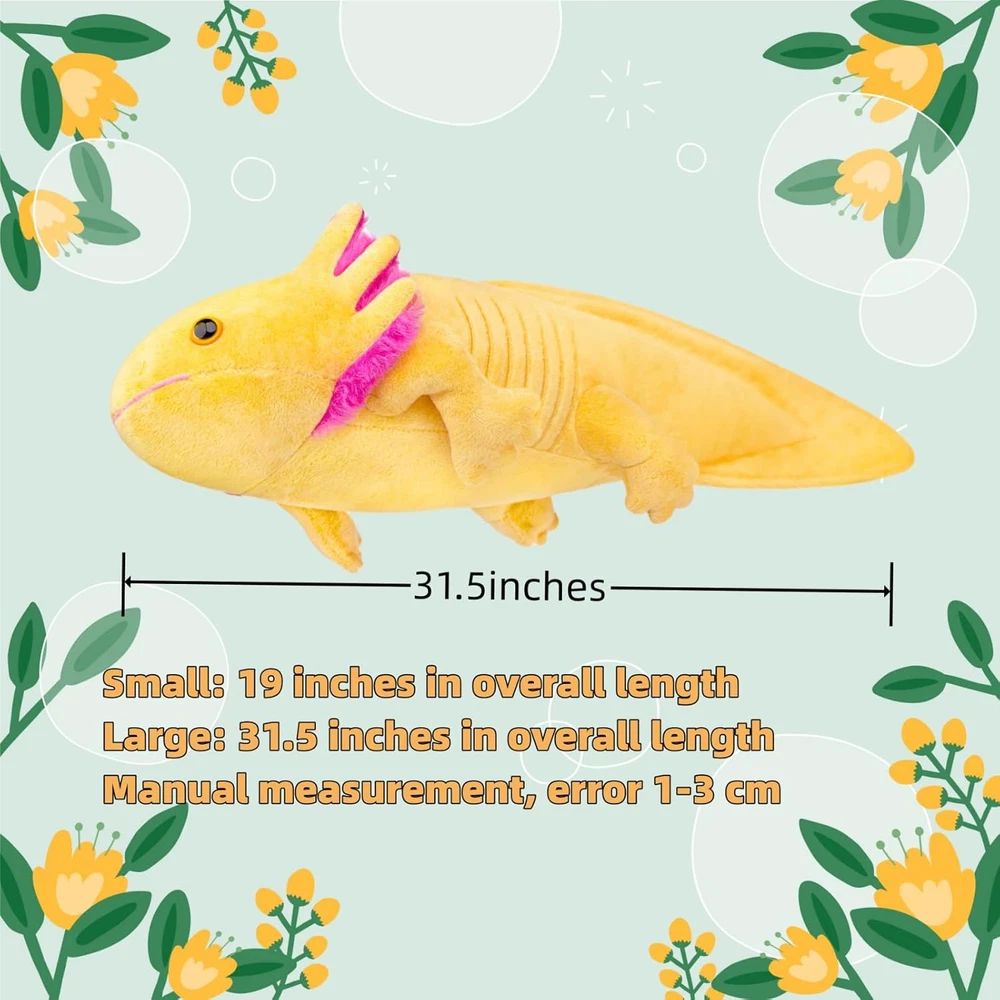 Store New Arrivals Add to Favorite View Feedback Contact Giant Axolotl Plush-Yellow,31.5" Lifelike Axolotl Stuffed Animal, Soft Plush Stuffed Animal,Plush Animals, Axolotl Plush, Gifts for Boys Girls Description Item Dimensions L x W x H 3"L x 2"W x 2"H Occasion Type Easter, Christmas, Fourth Of July, Baby Shower, Valentine’s Day Are Batteries Required No Color Yellow Material Type Polyester Animal Theme Axolotl Required Assembly No Theme PLUSH TOY Outer Material Plush Model Name Plush Toys Toy Figure Type Stuffed Toy Play Activity Location Floor Special Features Lifelike Number of Pieces 1 Subject Character Animal Size Large 【Soft and Durable】The realistic axolotl plush toy is made of high quality short plush that is safe against your kid's skin and has no pungent odor. Well-made, meticulous stitching, not easy to crack, durable. It is a toy that can stay with children for a long time 【Stimulates Imagination】Stuffed axolotl animals are great companions for kids to grab and hug with their little hands and will stimulate imagination and promote creative play. Your little ones will have a great companion to share stories or secrets with 【Perfect Gift】This plush toy is perfect for playing, collecting and cuddling, it is a great choice for birthday, Valentine's Day gifts, Christmas, Thanksgiving or any other anniversary gift choice for kids, friends, family. A great gift for plush toy fans of all ages 【Versatile】The cute simulated plush toy is perfect for living room, bedroom, nursery bed, kindergartens, daycares , car ,office and wherever your child likes to go. It can be used as nap pillow, office pillow, plush toys, home decoration, it can meet all your needs.Brings a lovely tactile experience. It's fun to collect, play with and display them 【Early Education Toy】The design of this axolotl plush is inspired by real animals in nature. Our designers have restored its true appearance, the details are realistic, and at the same time take into account the beauty of the design, you can use it to introduce to children and improve children's understanding cognition of nature Product Description ABOUT US We offer the best prices around on high quality products. Our E-store includes media such as books, movies, music and games while offering electronics, toys, sporting apparel, clothing, tools, general home, garden items and more. SHIPPING We are always working hard to ensure your package arrives as soon as possible. Please understand that some factors like weather, high postal traffic, and the performance of shipping companies are outside of our control. We offer free shipping to the lower 48 states and ship within 2 business days of payment, usually sooner. We do not accept P.O. Boxes. Please provide a physical address. For shipping outside of the continental USA, we only use eBay's Global Shipping Program.The item is shipped to KY and then sent to the rest of the world. International customers are responsible for all duties and taxes. Continue to check out in order to calculate costs for shipping the item to your country. Messages regarding eBay's Global Shipping Program MUST be directed at eBay EXCLUSIVELY. RETURNS We offer a 30-Day Return Policy on items which you are not completely satisfied with. You have the option for a full-refund or an exchange of the item. No returns are available on items shipped outside of the USA. PAYMENT We accept PayPal. CONTACT US This page content is yet to come Please ad us to your favorite seller and visit again later Thank You CUSTOMER SATISFACTION We try our very best to make sure every customer is completely satisfied. If there's a problem, message us! We're happy to help. WE ACCEPT Copyright © 2021 AutoDS. | All Rights Reserved