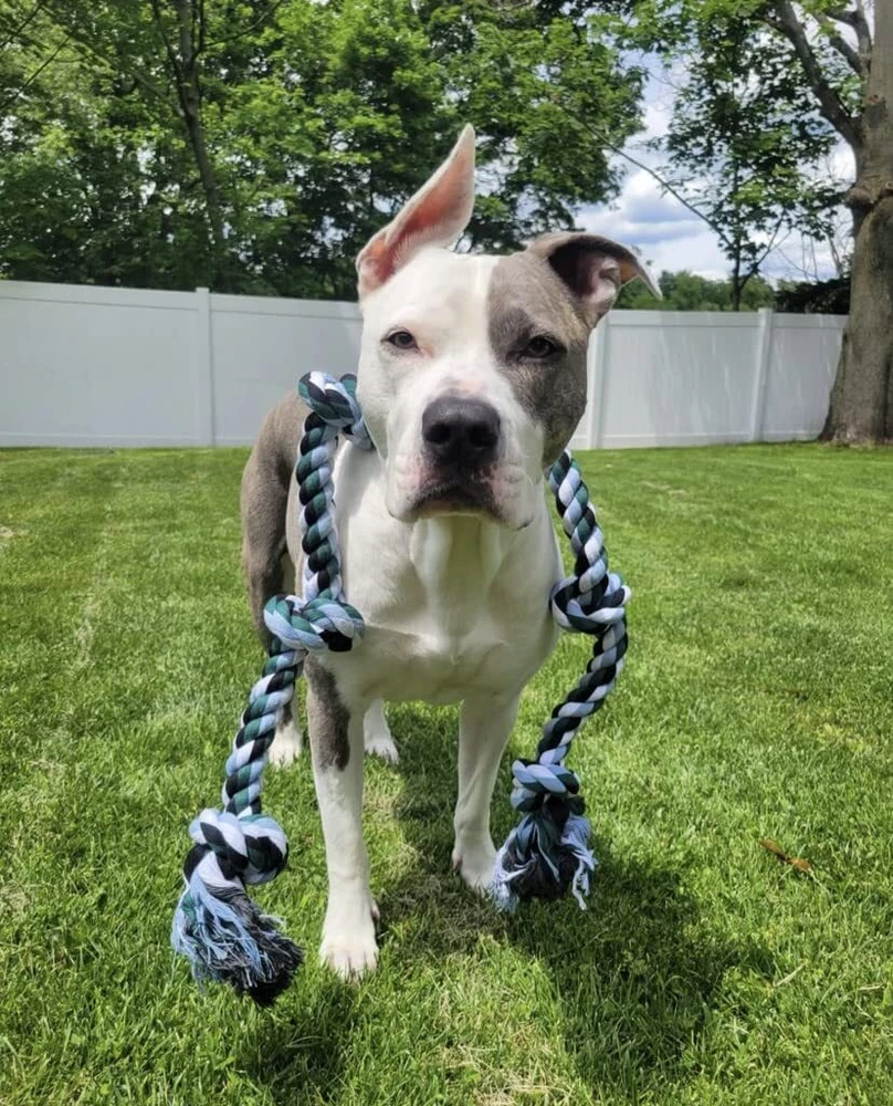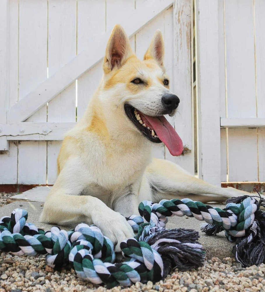 Supports Non-Profit Animal Rescue - Profits From Our XXL Dog Rope Toy for Extra Large Dog Breeds Benefits Our Non-Profit Animal Rescue - Largest Dog Rope Toy For XXL Dogs - This Dog Rope Toy for Giant Breed Dogs is 42 Inches Long - Our 6 Knot Rope Toy is Durable and Designed for Large Dogs, Extra Large Dogs, and Giant Dog Breeds - XXL Dog Rope Toy for Aggressive Chewers and Rough Tug of War games! XL Dog Tug Rope is for Tough Chewers. Made from Approved Materials for Your Furry Friend - Your Extra Large Dog Will Have a Fun Time with This Durable Rope Dog Pull Toy! This Giant Dog Rope Toy is Made for a Tough Game of Tug of War. Enjoy a Tug a War Game With this Strong Dog Toy for Aggressive Chewers. Our XXL Dog Rope Toy For Tough Chewers Really Lasts Poop Bag Rolls Inside - Roll of Custom Poop Bags with Funny Dog Sayings on Dog Poop Bags. This XL Dog Rope Toy Is Strong And Tough - Designed For Extra Large Dogs, Large dogs, And Giant Dogs Toys. This Dog Toy For Giant Dog Breeds Is Great For Tug-Of-War. Durable Dog Rope Toys is Suited To Curb Boredom , And For Bonding With Your Pet. Much More Durable Dog Toy Than An Antler Or Flossy Chew Toy For Dogs Giant Dog Toy for Tug, Chewing and Shaking – Tough Dog Toy for XL Dogs That Withstands Playtime with Large Dog Breeds and This Tough Dog Toy will Challenge Aggressive Chewers. This Nearly Indestructible Dog Rope Toy will Entertain your Dog for Hours. Not Your Typical Squeaky Toy That Will Be Destroyed In Minutes – Perfect Dog Toy for Extra Large Breed Dogs