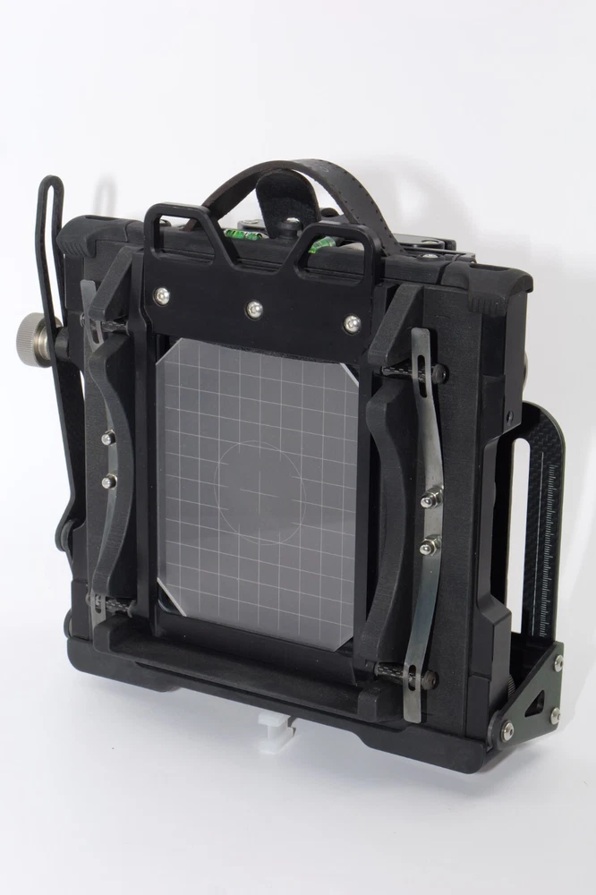 Gibellini ACN45 4x5 Field Camera. Made in Italy. High quality deluxe 4x5" large format field camera made from carbon fiber, and aluminum. Sturdy 4x5 camera with precise movements, and aluminum rails. Carbon fiber camera bed. Lined ground glass focusing screen. Light weight camera. Contrasting color royal blue normal & wide angle bellows. Chrome knobs on the camera. Professional traditional folding 4x5 field camera. Camera is in Mint/Mint- or 9.5 of 10 cosmetic condition. No dings or dents. Little sign of use. Good working order. Includes original box, Gibellini ACN 45 camera with normal bellows in Blue , and Wide Angle Bellows also in Blue . extra set of black knobs included, and two(2) 4x5 plastic Fidelity Elite sheet film holders. *************************************************** Gibellini crafts folding cameras that seamlessly blend heritage with innovation. These Italian-made beauties boast a distinctive design aesthetic and leverage cutting-edge technology to deliver exceptional functionality and performance. Furthermore, Gibellini's meticulous attention to detail extends to the materials used, incorporating high-strength, lightweight elements like aerospace titanium and carbon fiber to ensure exceptional technical quality and a premium user experience. Gibellini ACN 45 4x5 View Camera is a professional, traditional folding camera. It is made with Aluminum and Carbon Fiber. The camera is unibody CNC milled and includes a Carbon Fiber base, providing unparalleled stability while being lightweight. Aluminum rails allow for precise movements. EXTERNAL DIMENSIONS: 260x220x80 mm WEIGHT: 2.4kg / 5.3 lbs MIN/MAX extension bellows: 50 – 340 mm MIN/MAX with bag bellows: 0 – 400 mm FRONT RISE/FALL: + 55 / – 35 mm FRONT SHIFT: +/- 25 mm FRONT TILT: +/- 45° limited by bellows FRONT SWING: +/- 45° REAR RISE/FALL: 0 mm REAR SHIFT: +/- 15 mm REAR TILT:– 20° / + 90° (closure direction) REAR SWING: +/- 45° LENSBOARD: Requires Gibellini Size or Gibellini Adapter (Special Order, please send inquiry, Linhoff adapter is item #392040) TRIPOD MOUNT: 3/8” and 1/4 “ CAMERA BACK: horizontal/vertical positioning HOLDERS: compatibility with all commercial and Gibellini MECHANISMS: Aluminum/Carbon BELLOWS COLOR: Black (Special Order options available) BODY COLOR: Black (Special Order options available) ***************************************************** Nice high quality unique 4x5 Gibellini carbon fiber and aluminum field camera from Italy with extra wide angle bellows in Mint- condition. Sells with no reserve at a price of $1875 . I have LOT more Wisner View Cameras, Large Format cameras, Lenses and Accessories, Soft Focus and Barrel lenses on my other auctions, web page and eBay Store.