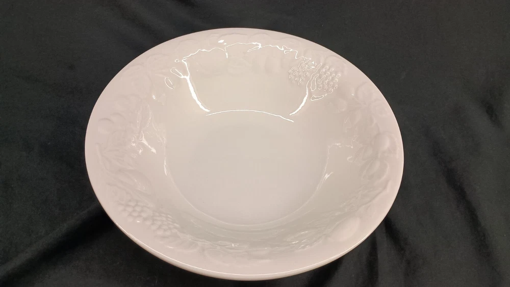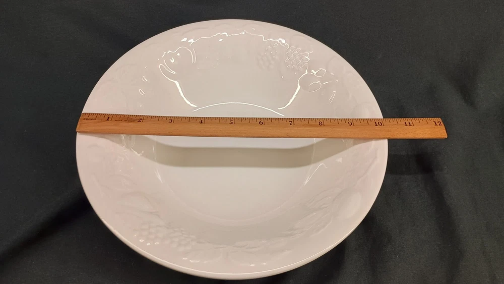 This Gibson serving bowl features a raised fruit pattern on an off-white stoneware material, making it a charming addition to any table setting. Measuring 10 inches in diameter, the bowl has a round shape and is designed with a contemporary original style. The brand, Gibson, is known for its quality dinnerware products, and this FRUIT model from the product line showcases a printed backstamp indicating its authenticity. Made in China, this serving bowl is both decorative and functional, perfect for serving fruits or salads during gatherings or everyday meals. Thank you for visiting my listing today and thank you for your interest in this item! My goal is to have a pleasant transaction resulting in a satisfied customer. I hope any transaction between us leaves you with a feeling of confidence knowing you can trust me and the items I offer here. *Most if not all my listings are set to accept offers. Feel free to send an offer and I will be happy to consider it!! *Please contact me with any questions or concerns and I will be happy to help. *Always examine the photos carefully, and if in doubt, email me with any questions you may have. *Please note that condition statements are offered as a guide only. They will always be somewhat subjective and reflect our opinion, which may not necessarily agree with someone else's opinion. PLEASE READ: I aim to please and I want my buyers to have a positive transaction with me. If you have questions, concerns, or special requests related to any of my items I hope you will contact me so we can work them out to your satisfaction. I sell my items to give you a great item at a decent price while making a little profit at the same time. If you feel the item you are interested in is too pricey do not hesitate to send me a fair offer and I will consider it. My goal is to satisfy your needs and mine so both parties can benefit. SHIPPING: If you prefer a different shipping method or company please contact me and I will do all I can to make that happen. If you have concerns or requests about the packaging of your item contact me and I will do all I can to accommodate them. Shipping costs are based on location in each state or country, the costs always differ. After I have received your payment I will ship your item out within 3 business days or less excluding weekends and holidays. BEFORE PURCHASING & BIDDING: **Please see all the pictures. I do not have great photography skills but I try to get the most accurate photos I can. If you are unsure about something you see in a photo contact me so I can do what I am able to answer your concern about the item. **I cannot stress enough that if you have any questions or concerns please contact me before purchasing and bidding. Communication can solve so much. **As a customer myself, I understand the meaning of customer satisfaction and my goal is to have nothing but satisfied customers. If you are not unsatisfied with your purchase I ask that you please contact me so I can take care of your issue. My goal is for you to be 100% satisfied. INTERNATIONAL BUYERS WELCOMED - PLEASE NOTE: I welcome International buyers! Please be aware that any custom/duties/taxes that the parcel might incur once it is out of the USA are the responsibility of the buyer. Please check with your country's customs office to determine what these additional costs will be prior to bidding or buying. Please refer to the eBay Site Map for more information if needed.