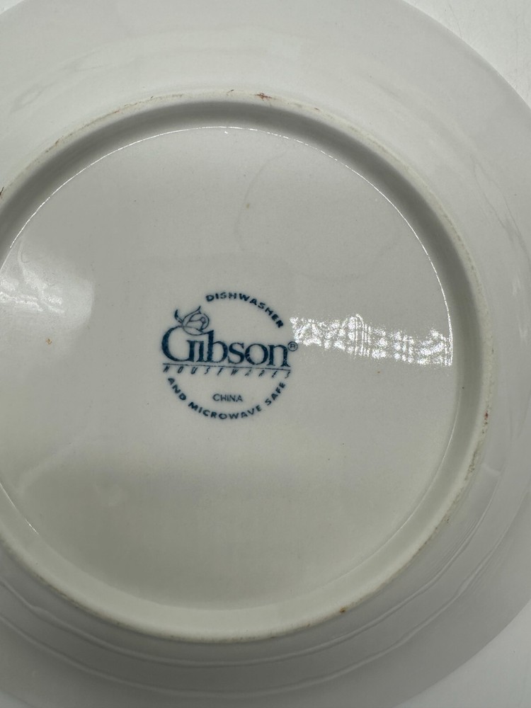 Add a touch of elegance to your dining table with this beautiful set of three Gibson Four Seasons white salad plates. The round plates measure 7.75 inches in diameter and feature an embossed floral fruit pattern that's perfect for any occasion. Made of high-quality earthenware and stoneware materials, these plates are both discontinued and microwave safe, making them a convenient addition to your dinnerware collection. The plates are printed with the brand's backstamp and are perfect for adult use. The set includes a dessert plate, a salad plate, and a side plate, all of which are ideal for serving fruits and other dishes. These plates are a must-have for any 21st-century home and are a great addition to your pottery and glass collection.