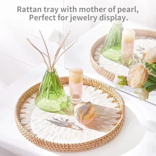 Menu 1. We require immediate payment. 2. We currently accept payment via eBay managed payments only. 3. Once payment is cleared, we will dispatch your shipment within 1-3 business days. Please refer to the "Shipping" tab for more information regarding shipping speed to your destination. [Gift Box] Rattan Tray with Mother of Pearl Inlay, Round Rattan Serving Tray with Wooden Base, Decorative Wicker Basket for Table Decor, Mosaic Tray for Storage Display of Jewelry Coffee Bread (white) Product description 【Environmentally Friendly & Durable】 Crafted from 100% natural high-quality rattan with mother of pearl inlays at the base, the serving tray is a sustainable and long-lasting choice for a healthy home. 【Distinctive Bohemian Artistry】 This pearl white rattan tray is a unique work of art, highlighted by a stunning shell pattern and mother-of-pearl inlays, bringing a natural, rustic elegance to your home. 【Multi-Functional & Adaptable Tray】This rattan tray is perfect for serving everything from breakfast to snacks, and it also works as a decorative organizer for small items in any space, whether it’s the living room, kitchen, or bathroom. It’s durable enough to be used as an art piece and can be easily cleaned with a damp cloth. 【Thoughtful Gift Selection】 This 12-inch round rattan tray is an excellent gift for any special occasion, be it Christmas, a birthday, a wedding, or a housewarming. It's a perfect choice for gifting to family, friends, colleagues, or even yourself. 【Easy Care & Durability】This artisan-crafted serving tray is built for both quality and simplicity. To clean, just wipe it with a damp cloth, and let it dry out of direct sunlight. Keeping it in great shape couldn’t be easier! PLEASE MESSAGE US IF YOU HAVE ANY OTHER QUESTIONS, AND MANY THANKS FOR READING ALL OF THIS. Copyright ©#. All Rights Reserved.