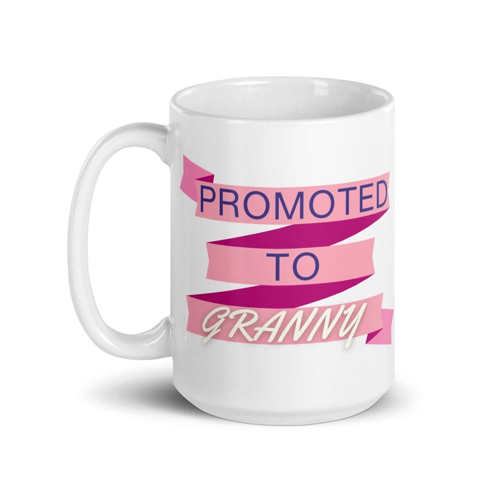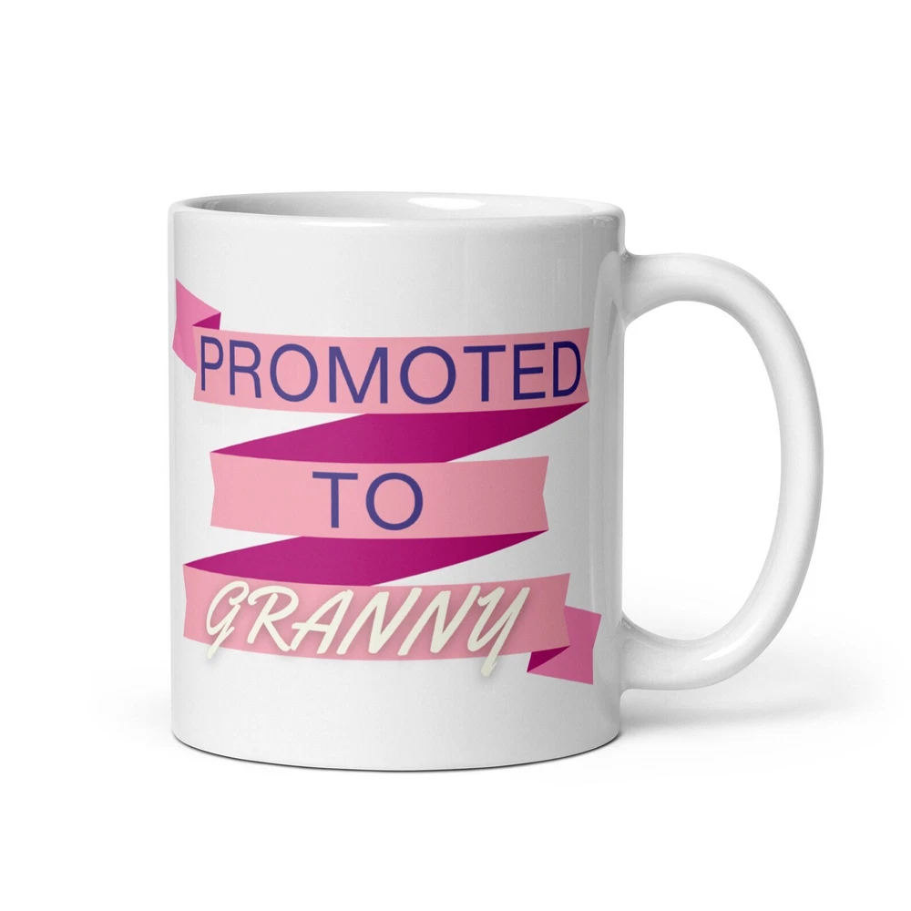 Gift For Grandma Present For First Time Grandmother Promoted To Granny Mug Granny Gift Product Details.. This high quality 11oz. ceramic white mug has a premium hard coat that provides crisp and vibrant color reproduction sure to last for years. Perfect for all hot & cold beverages. The highest quality printing possible is used. It will never fade no matter how many times you wash it. Material: 100% Ceramic. Print both sides. Dishwasher and Microwave Safe. High Gloss + Premium White Finish. Printed in the U.S.A. Personalized & Custom. We support personalized and custom mug to add custom, when placing an order, you can add notes to the "order note" in shipping address section. Also you can contact us directly via message. Shipping Info. Ready to ship in 1 to 2 business days, All products are made-to-order and proudly printed in the United States. Shipped by USPS and DHL, You will receive your order in 5-7 days. Replace & Refund. All products are defective during shipping broken, chipped will be replaced free of charge. You are not satisfied with the product, we will refund 100% money to you. If any other issues arise, please do not hesitate to message, we would be more than happy to assist you.