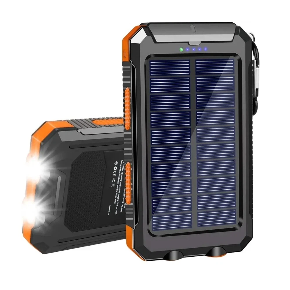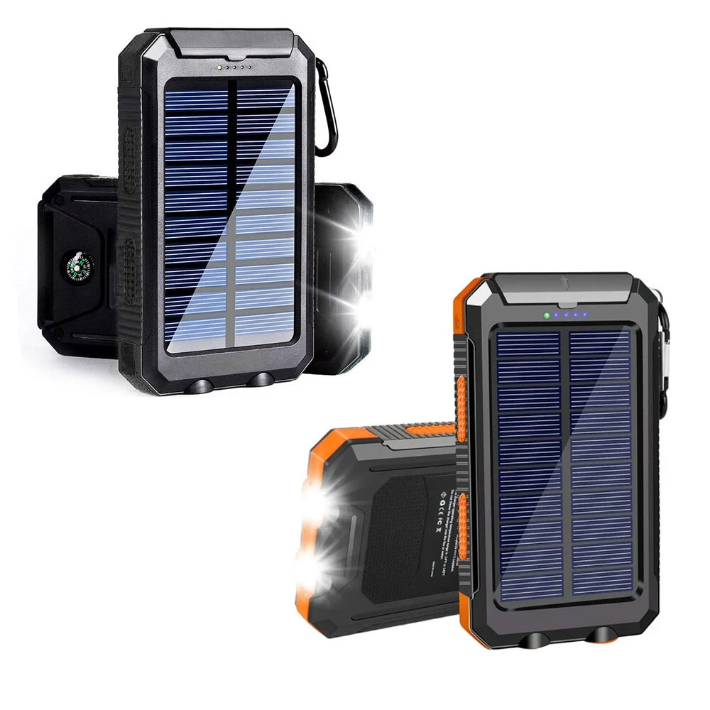 Waterproof Portable Solar Charger: Special Design for Outdoor. Compact design and with a hook , so you can freely attach it to your backpack in camping, and it will recharge itself under direct sunshine for emergency. 1.Dual USB Outputs DC 5V/2.1A(one device, output max 2.1A), DC 5V/1A(two devices, each output 1A) USB ports for Tablets, other smart phones or other electronic devices. DC 5V/1.5A USB input for fast charge solar power bank itself. Allow you to charge two devices at the same time, the USB cell phone charger provides great convenience with you and your friends who need charging services. Controlled by intelligent IC, dual USB ports offer 5V/2.1A outputs high speed charging and enable you to charge 2 devices simultaneously, compatible with all phone models. Warmth Tip: If you want to let the two devices charger together (two devices, each output 1A) will charge a little slower, but a device will charge 5V/2.1A outputs high speed, so charging will be faster. 2.Two LED Flashlight & SOS Function Two LED lights can be used as flashlight with Steady-SOS-Strobe mode. As an emergency lighting in darkness, the flashing light mode can be used as SOS. Warm Tip: 1. Please charge it via the outlet at least 8-10 hours at first-time use to fully activate this solar panel. 2. LED Working Method : LED button is on the side. You must first press and hold to turn on above 3-5 seconds, the led flashlight will work. short press to cycle modes/turn off. 3. Due to sunlight intensity and solar panel conversion rate, it may take a long time to fully charge the power panel. We suggest you fully recharge it via outlet before travel or hiking. 4. This question about USB cap is tight. Easiest way is to place 1st 3 fingernails under the cap and lever upwards. 5. In summer, the temperature rises. Don't leave the solar charger in the car. Due to the characteristics of the lithium battery material, the ambient temperature will overheat and the chemical reaction will occur, which will inevitably cause safety problems.