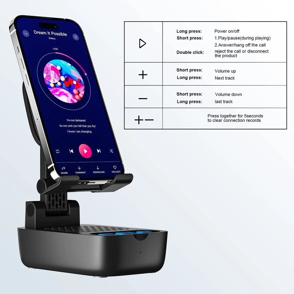 Gifts for Men Women,Birthday Gifts,Cell Phone Stand with Wireless Bluetooth Speaker, Punchy Bass & HD Stereo Sound Speaker for Home & Outdoors Compatible with iPhone/ipad/Samsung-Black AMAZING STEREO SOUND : COMISO Bluetooth Speaker is equipped with a full range 5 W drivers, which perfectly realizes enhanced bass, accurate mids and clear highs sound, which great suitable for listening to music & watching movies PREFERRED GIFTS FOR MEN & WOMEN WHO HAVE EVERYTHING : Phone Stand with Wireless Bluetooth Speaker provide you with adjustable viewing angle and louder voice. Idea cool phone gadget gift for your family and friends great for mother's day, Father’s day, Christmas, Birthday, Anniversary or any other special holidays BLUETOOTH 5.3 SPEAKER with HOLDER : A new generation of Bluetooth 5.3, has lower power consumption, faster transmission and more stable signal without any delay. This portable wireless speaker is compatible with multiple bluetooth devices. Wireless speaker with microphone makes taking & making calls a breeze FOLDABLE & PORTABLE PHONE STAND : The universal adjustable phone stand speaker can be titled to vertical, It allows you to get a more comfortable viewing angle. Reduce the frequency of looking down at the phone screen to avoid hurting your back and neck. Makes you hands-free to enjoy your games, videos and Facetime STABLE and WIDE COMPATIBILITY : This cell phone holder for desk is equipped with a weighted base. Therefore, this phone stand holder with speaker is stable enough to support all 4"-12" smartphones or tablets. Compatible with Apple, iPhone, Samsung phone, Kindel, Switch, iPad Mini, iPad Air, and other 4"-12" tablets etc. And its non-slip rubber pad prevents your device from accidentally slipping TRUE WIRELESS & HD SURROUND SOUND : 360-degree surround sound can easily fill up your room. WHAT YOU GET - X8 Phone Stand with Speaker, USB Type-C charging cable, Instruction manual SHIPPING Domestic Buyers - We have confidence in our products, but if you are not fully satisfied please contact us within 30 days of purchase and you will get full refund. - We ship within 3 business days of payment, usually sooner - We offer FREE shipping on all orders! - We only ship to the lower 48 states, no APO/FPO addresses or PO Boxes allowed International buyers – please note: Import duties, taxes, and charges aren't included in the item price or postage cost. These charges are the buyer's responsibility. - Please check with your country's customs office to determine what these additional costs will be prior to bidding or buying. * Order Cancellation Policy ** You can return a product for up to 30 days from the date you purchased it. 1. The seller reserves the right to cancel the special case only due to eBay cancellation fee. 2. The decision of seller is the final. 3. The seller will respond to the cancellation request within 2 business days. Please wait for the result of cancellation. 4. In case the cancellation is not completed by some reasons, the buyer can follow the options below to get the refund. 4.1 The buyer can reject the item when it arrives. 4.2 The buyer can send the item back to the seller within 30 days If the buyer receives item (USA Shipment ONLY). The seller will provide the FREE return label to the buyer when the buyer opens " Return Item" case on eBay by using the reason as "Change my mind" ONLY. 5. When buyer has placed the order. The order will be processed and completed by automatic warehouse system within 5 minutes. In case that buyer sends the cancellation request after 5 minutes of placing the order, the request will be rejected. **Sending direct message to cancel the order is not allowed for every case.* Return Policy For the return case - If buyer would like to return the items for refund or replacement, please CONTACT SELLER to receive the free return label from seller. The refund or replacement will be processed with the tracking number of return label which is provided by seller only. The other ways of return which are not approved by seller will not be processed for the refund or replacement.