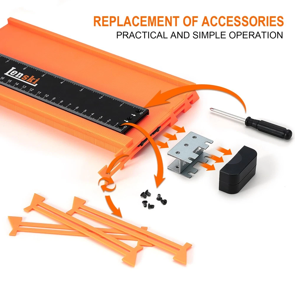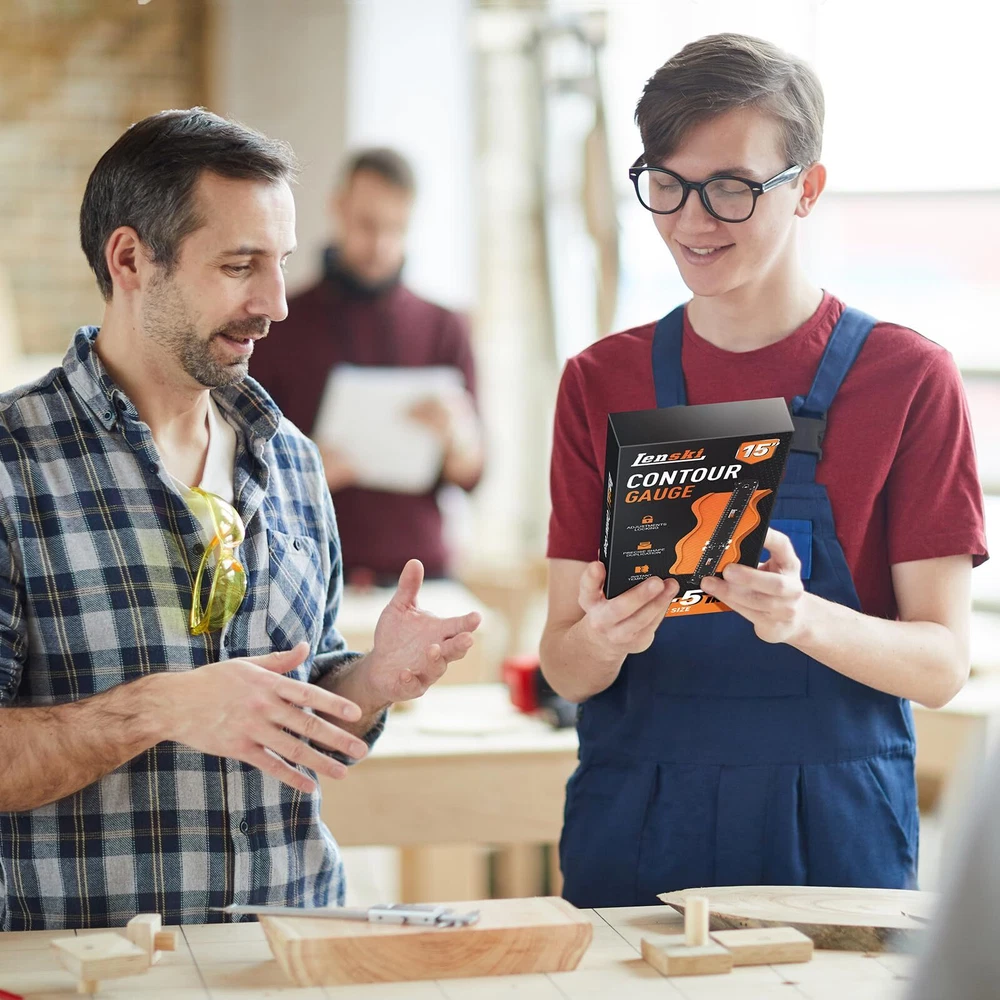 Contour Gauge 【Christmas Gifts for Men】- Made from high-strength materials, the Contour Gauge won't scratch or damage the original surface of the shape you're copying. Three size contour gauge profile tool is a safe and reliable tool for any DIY project 【Mens Stocking Stuffers】- The Contour Gauge can quickly and accurately duplicate any irregular shape. 5-inch suitable for corner copy, 10-inch fits to measure longer projects,15-inch after connecting can copy larger object contours 【White Elephant Gifts for Adults】 - The gauge has both inch and centimeter scales on both sides of the tool, allowing for accurate measurements no matter what system you prefer. Simply press the gauge onto the shape, trace the contour, and cut to size 【Unique Gifts for Men】 - Unlike other contour gauges with plastic locks, the Contour Gauge features a sturdy metal locking mechanism that is built to last. It can withstand long-term use and maintain its original shape 【Gifts for Men Who Want Nothing】 - The Contour Gauge makes a great gift for any man in your life. It's perfect for birthdays, Christmas, Father's Day, and anniversaries. Give the gift of precision and accuracy with the Contour Gauge