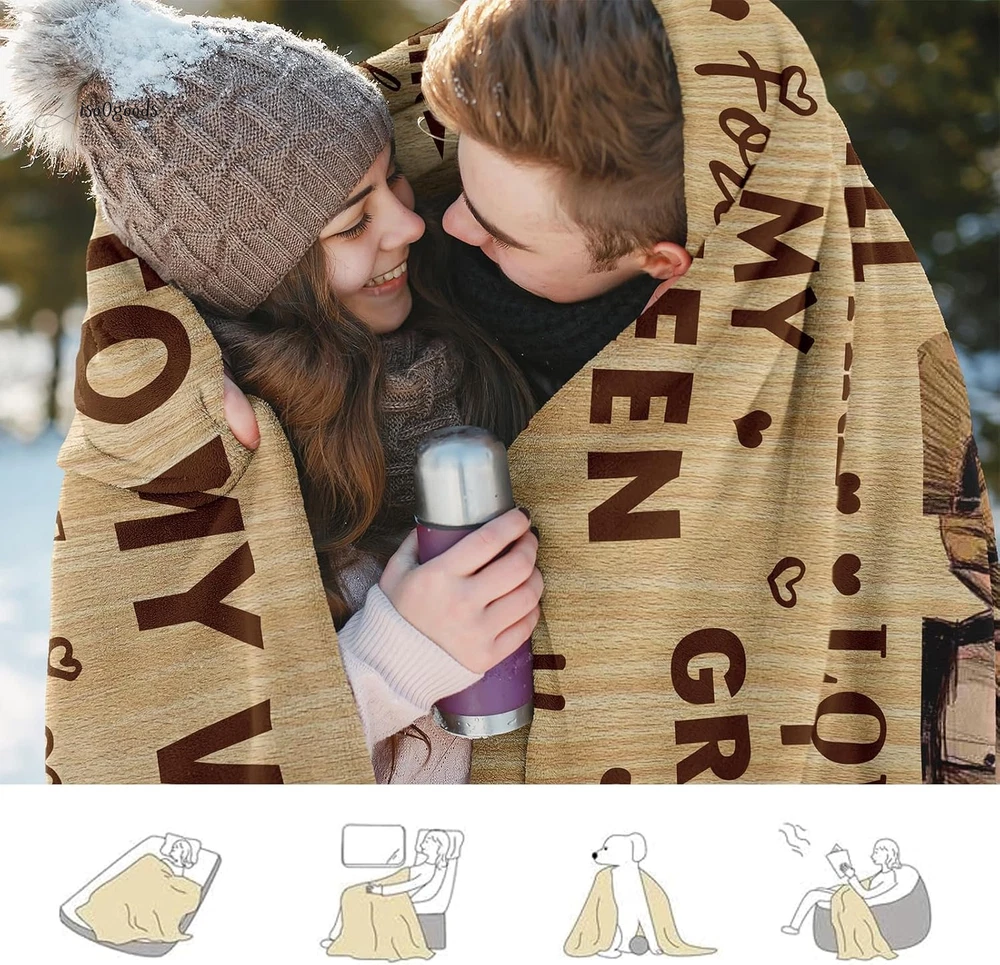 Surprise Your Wife with the Perfect Gift – Cozy Flannel Blanket 💑 Perfect Gifts for Wife : Your wife, always by your side through thick and thin, deserves the best. Gift her our cozy, soft flannel blanket, adorned with warm words that convey your love and appreciation. ❤️ Love Gifts for Her : Whether it's her birthday, wedding, anniversary, Valentine's Day, Mother's Day, Christmas, or any special occasion, our specially designed blanket will surprise and delight your wife. 📏 Size & Material : Measuring 60'' x 50'', this flannel blanket is soft to the touch, smooth against the skin, lightweight, portable, and features good air permeability. Easy to store and carry, it’s perfect for any setting. 🎉 Applicable Scenarios : Suitable for all seasons, indoors and outdoors. Whether it's an outdoor cookout, air-conditioned room, or cold winter night, this blanket is ideal as a bed throw, sofa throw, office throw, and more. 😊 Easy to Clean : Some wrinkles may appear when you first open the package, but they will disappear after a simple wash. Effortlessly maintain its pristine condition. Product Description Size : 60’’ x 50’’ Material : Flannel Versatile Use : Perfect for outdoor camping, summer air-conditioned rooms, winter sleeping, reading on the sofa, watching TV, office naps, and more. Not only practical but also a decorative touch. High-Quality : Light and warm, this blanket feels like a warm hug. It’s an easy way to strengthen the bond with your wife and express your love. Easy to clean and care for, it’s resistant to shrinking and fading. Express your love and appreciation with our cozy flannel blanket, the perfect gift for your wonderful wife!