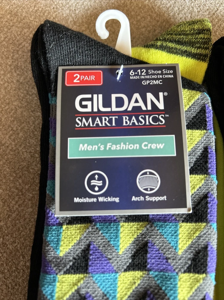 Gildan Smart Basics Mens 6-12 Fashion Crew Socks Moisture Wicking Arch 2pkgs/4pr. Condition is New with tags. Shipped with USPS Ground Advantage.