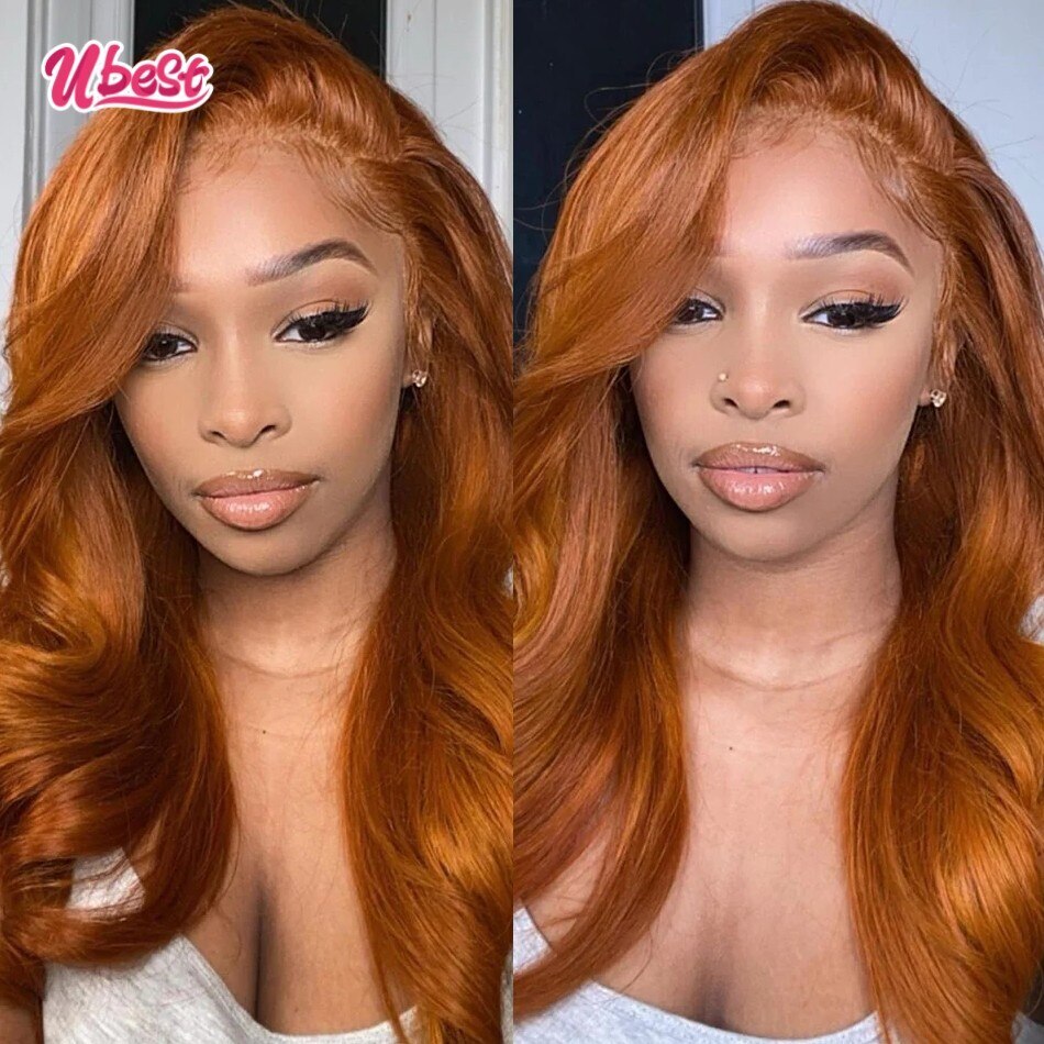 13x4 Lace Front Wig Caramel Brown Brazilian Virgin Body Wave Highlight Ginger Transparent Glueless Loose Wave Human Hair Wigs