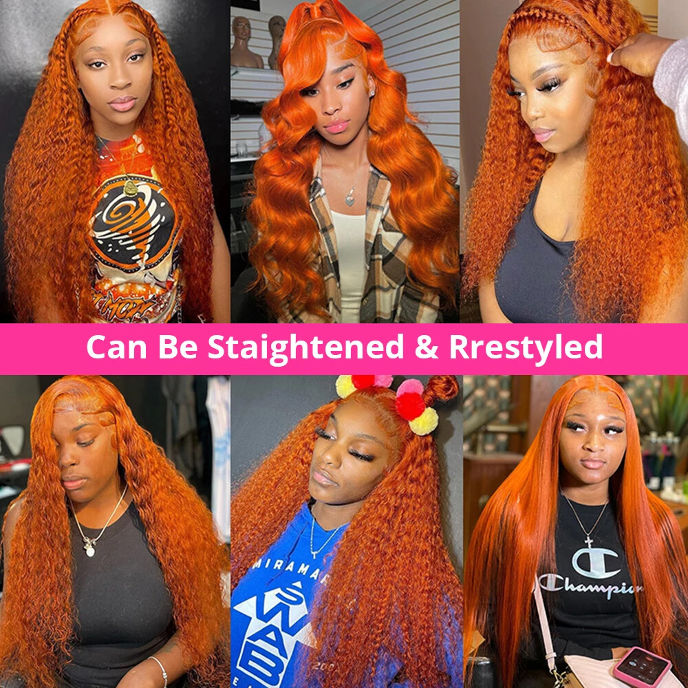 Product Information Hair Sytle: Lace Front Wigs Hari Color:Orange Ginger Length: 10-36 Inch In Stock Available Lace Color: Hd Transparent Lace Frontal Wig Texture: Brazilian Human Hair Body Wave Material: 100% Human Hair Without Chemical Processed 1. Top Swiss Lace : Giving you the ability to have a longer or multi-direction partings 2. Stretch Cap : Designed for a snug fit and comfort allowing wearing the unit with or without adhesive 3. Combs at the Front, Back and Two sides: To better secure the wig 4. Adjustable Strap at Back: You can adjust the size freely according to your head at 1, 2 ,3 position