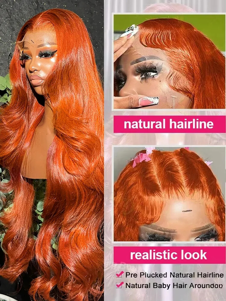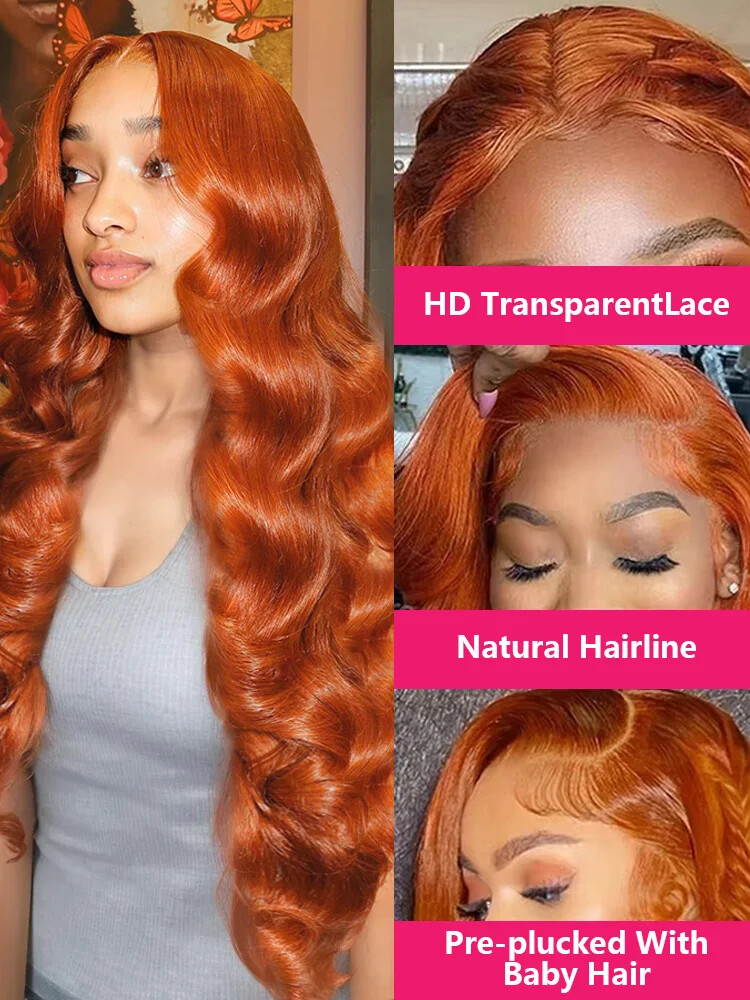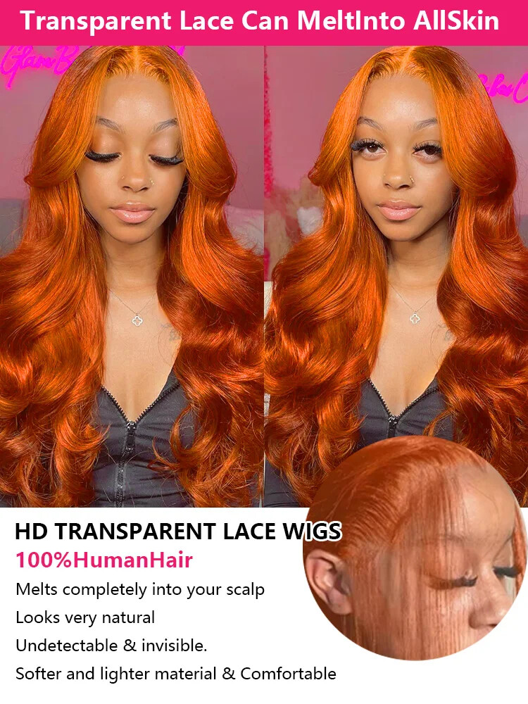 Ginger Orange 13x4/13x6 HD Lace Frontal Human Hair Wigs Glueless Body Wave Wigs
