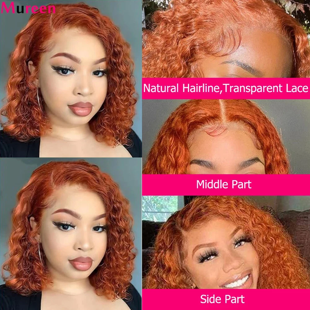 Ginger Orange Bob Wig Wear and Go Glueless Deep Wave Wigs Human Hair Ready to Wear 4x4 Lace Closure Wig Water Wave HD Lace Front Human Hair Wigs For Women
