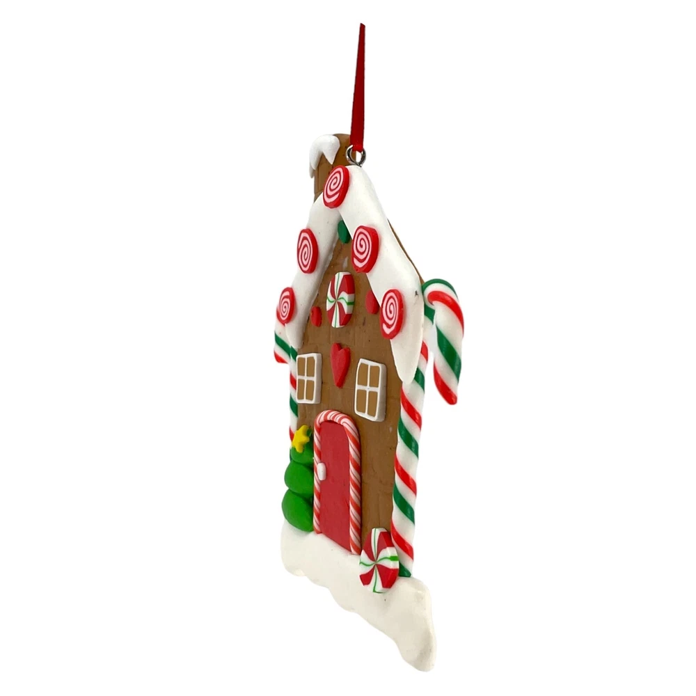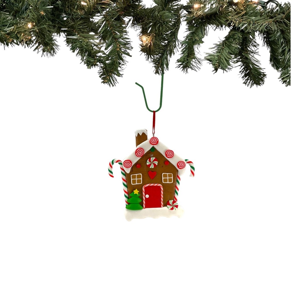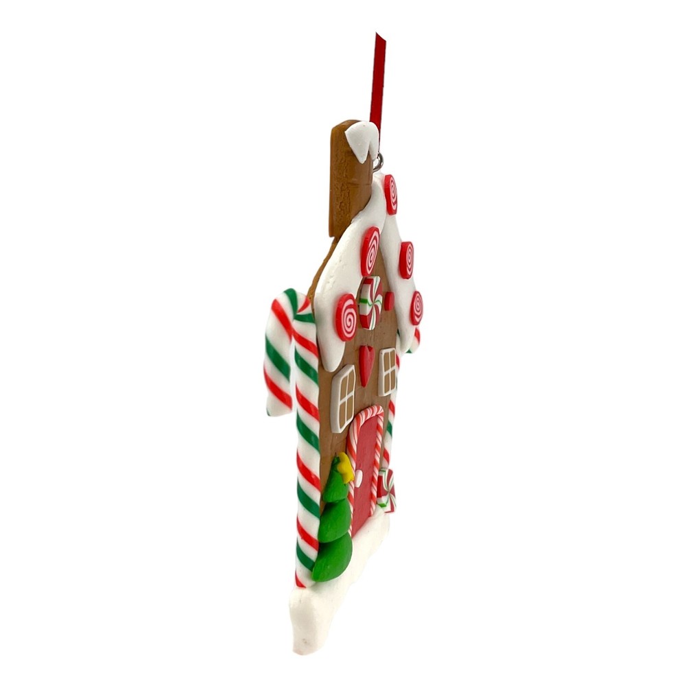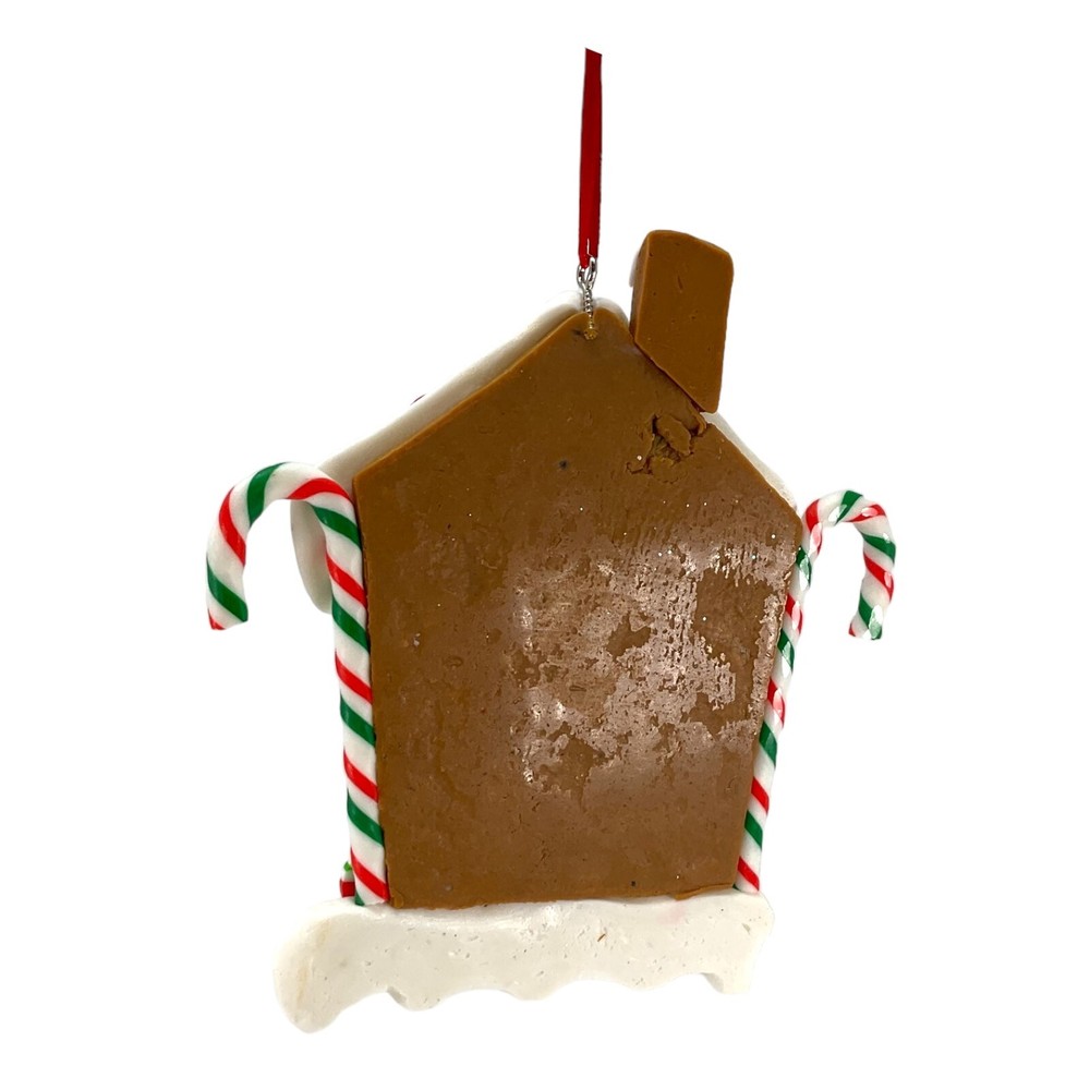 Gingerbread House with Tree and Candy Canes Christmas Ornament Decoration 4 Inch PRODUCT DESCRIPTION Gingerbread House with Tree Ornament. Made of Resin. 4 inch Height. 0.5 inch Wide. 4 inch Length. © Copyright . All rights reserved.