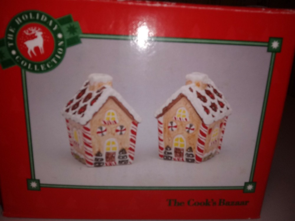 Gingerbread House Collection Teapot Salt and Pepper Set Cooks Bazaar Christmas. New Open Box. Brand New Condition