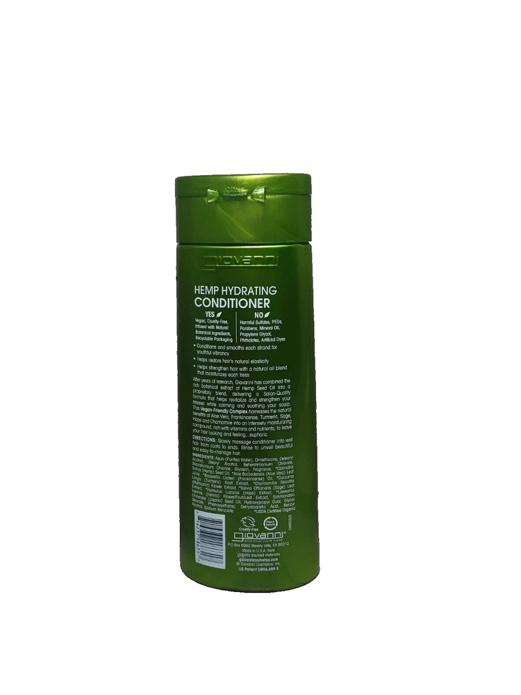 Giovanni Hemp Hydrating Conditioner Vegan-Cruelty Free-Color Safe-Salon Quality Natural and botanical ingredients USDA Certified Organic Free Same Day Shipping! #(951)