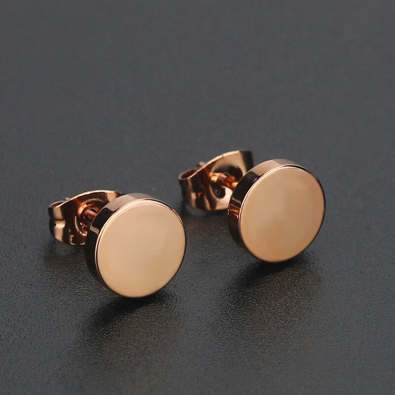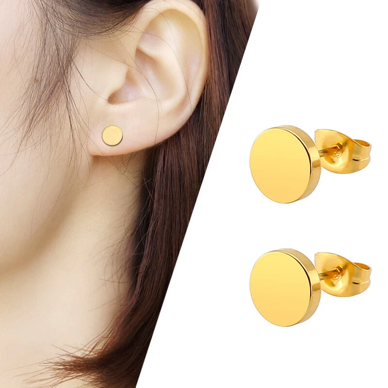 Girl Fashion Punk Round T itanium Stainless Steel Gold Stud Earrings Hot Jewelry Description 100% Brand New and High Quality. Material:Alloy Pattern: Round Color: Black, Gold, Silver, Rose Gold Size: 4,5,6,8,10,12mm Style:Vintage Occasion: Party,Wedding,Birthday,Anniversary,Engagement,Christmas Package Content:1 piece, not 1 pair Note: 1.Please allow1-3 cm differences due to manual measurement, thanks. 2.Please understand because of the light irradiation or computer display difference, so Ican't guarantee photos and real color is 100% the same.