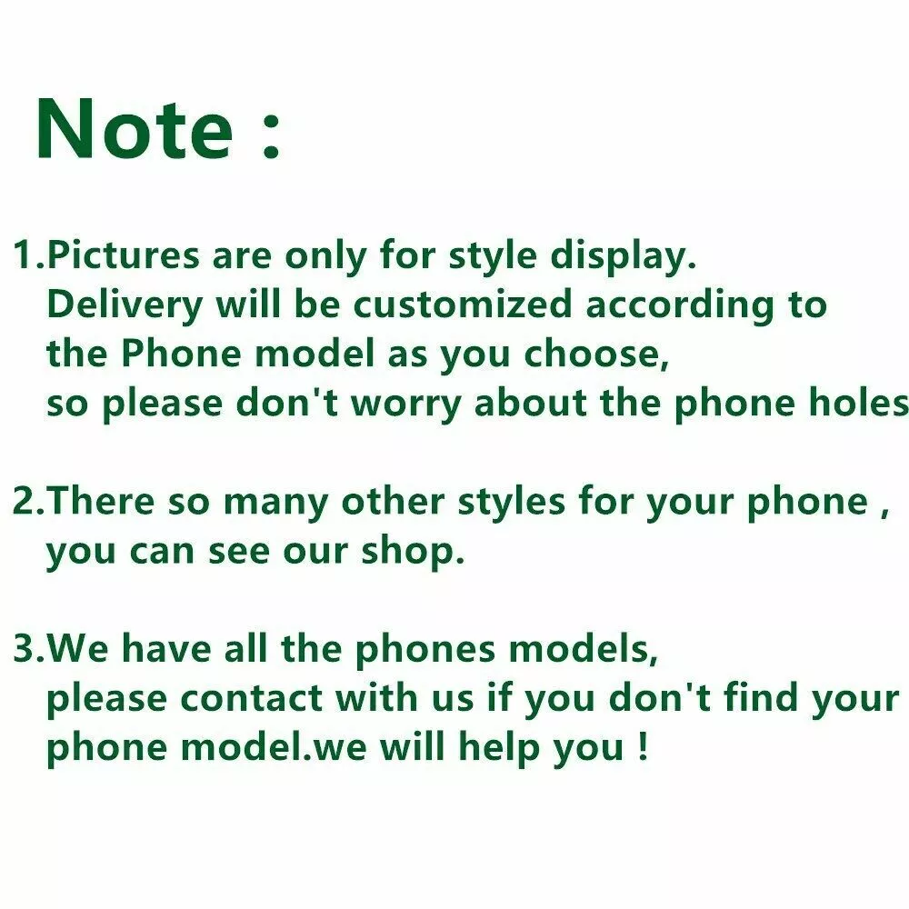 Girls Bling Glitter Diamond Women Rhinestones Crystal Case Cover for Cell Phones There are so many other colors,if you need the other color,please feel free to contact with us :) Package include: As you choose *100% Brand New cases. *Made of high-quality TPU *Fashion design, easy to put on and easy to take off. *Protect your from dust, scratching and shock. *Protect your valuable investment from scratched and damage. Payment Delivery details Feedback About us Contact us Payment We are Paypal Verified member. It is easy and safe way to allow you to pay by credit cards, debit cards, bank transfers and PayPal account balances. We accept PayPal only. Please pay within 3 days unless buyer has contacted us before with any specific reasons. Delivery details We will ship your purchased items in 1 working days after receiving clear payment. Country Approx. Delivery time United States 7-15 working days Canada/Australia / Israel / United Kingdom 20-36 working days Brazil / South America / France / Spain / Germany/ Eastern Europe / may take up to 6-9 weeks due to strict Custom Inspection Note: As international shipping is affected by many unsteady factors: customs, flights, weather, war, trade policy ,etc, some shipments do get delayed sometimes, so please do contact us if you still have not got the items after the referred time. Feedback We are transnational corporations,If you are satisfied with the purchase, please take a minute to leave us a positive feedback. We appreciate your kindness. Please email us before leaving negative and netural feedback or openning any dispute,and please give us 1 business days to resolve your complaint.Your full satisfaction is our duty. Thanks very much! About us We are a online wholesale store. We are selling at wholesale price,and our products are good q uality,We guarantees all our customers would be satisfied with our products. If you are not satisfied, we will try our best to make you please on your purchase Contact us If you have any questions, please do not hesitate to contact us on Ebay. Emails are normally answered within 24 hours . Design/Finish Matt, clear, Case Friendly - not edge to edge, Diamond Case, Glitter, Jewelled, Luxury, Transparent Character Girly, Women Country/Region of Manufacture China Compatible Brand For Alcatel, For Apple, For Google, For LG, For Motorola, For Nokia, For OnePlus, For Samsung, For Sony, For ZTE Material Tempered Glass Type Screen Protector Features Anti-Peeping, Anti-Shatter, 360 Protection, Accessible Controls, Anti-Fingerprint, Anti-Scratch, Shockproof Wireless Charging Standard Yes MPN Does not apply Colour love pendant Manufacturer Colour clear Item Weight 100-200g Brand HFICY Version 2