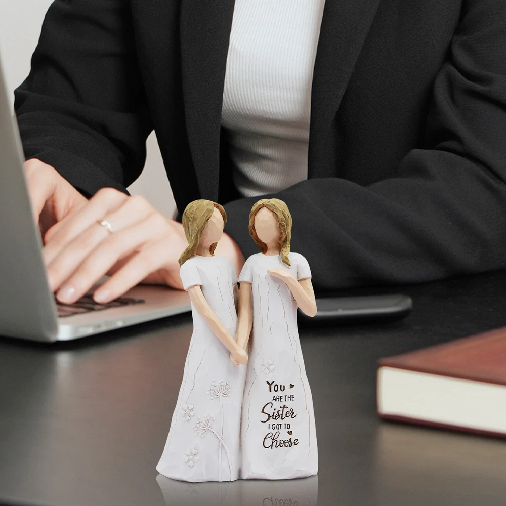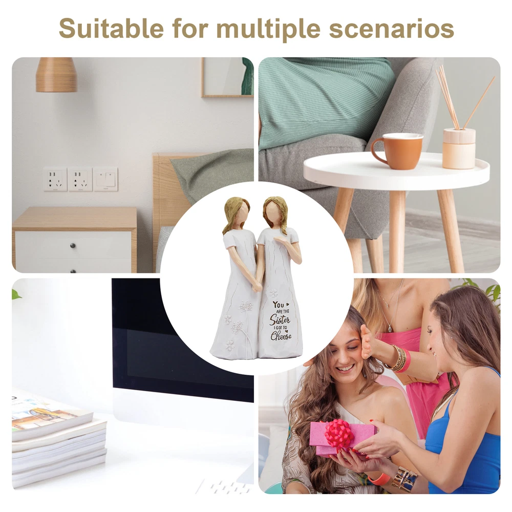 Unique Expression: Delight your chosen sister with our Best Friends Sculpture. It's a meaningful gift that speaks volumes about your love and friendship, symbolizing the special bond you share. Show her she's the sister you cherish and appreciate the most. Work Well for You: Strengthen the love between any sisters or friends with this exquisite best friends sculpture. Meticulously crafted with perfect details and touch, it symbolizes their unbreakable bond and affection. Excellent Durability: Skillfully carved from high-quality resin material, this best friends sculpture showcases exceptional attention to detail. Its robust construction ensures long-lasting durability, while its easy-to-clean surfaces can be quickly dusted with a soft cloth. Diverse Applications: This best friends sculpture is a perfect gift for your loved ones, as it symbolizes the bond of friendship and loyalty. You can display it on a desk, bookshelf, table or fireplace, as it matches any interior decor. It is also suitable for various occasions. Unique Gift Choice: A unique and heartwarming gift for your best friend or sister on any holiday or special day that conveys your love and gratitude, fostering a deeper and lasting bond between you both. These cute resin figurines express your love and friendship in the perfect touch. Perfect for decorating a desk, bookshelf, table or fireplace. A great gift for your best friend or sister on a birthday or any holiday. Specifications: Product size: about 8.5x14.5cm/3.35x5.71 inches Material: Resin Packing List: 1*Best Friends Figure