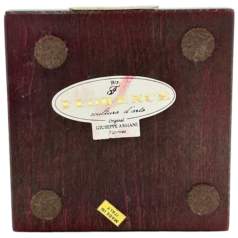 A terrific art piece from an extraordinary Italian artist Giuseppe Armani. Known for his work with cold cast porcelain and figurine designs. The figurine has a wooden base and little name plaque. Item is in like-new condition and shows no major damage. Expect the possible little surface scratches but nothing that takes away from its charm. Please see all images for further details. Giuseppe Armani was an Italian sculptor and artist. Born in 1935 he died in 2006. From an early age he was recognized as a gifted artist. Giuseppe attended the Academy of Fine Arts in Florence and became well known from his artwork at the Art Gallery in Pisa. In 1973 he associated with the Florence Sculture d'Arte in Tuscany. Armani's works are known worldwide for their detail, life, and colors. giuseppearmani.org Be sure to see all our other items for possible bundle and shopping deals! Will pack with extra care and attention that fragile items require. Quick shipping guaranteed. Returns accepted at buyer’s expense. Display boxes and props not included unless otherwise noted. Own this beautiful item! We are a reputable seller! Check out our reviews to see what customers say about our products and service. You won’t regret trusting Fairfield for your online purchase.