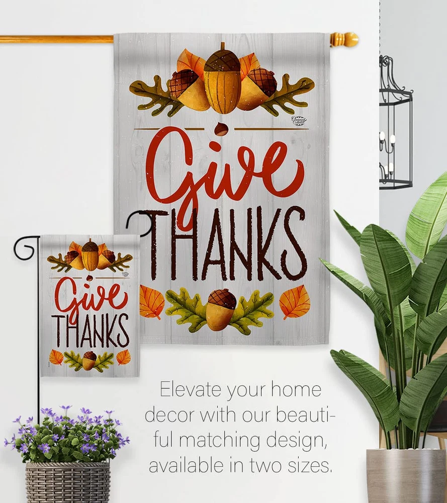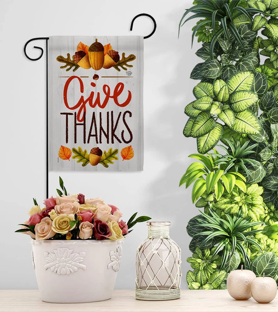 Thanksgiving Beautiful Mini Garden Flag with Metal Garden Banner Pole Stand - Complete Set with Garden Pole - 16" x 40" Power Coated Metal Flag Stand have variety of Garden Flag Set for all occasions. Uniquely design for hanging indoor or outdoor use. We are committed to offering you exceptional values. Our customers enjoy displaying our Garden Flag Set for longer periods. Specification: Theme: Thanksgiving Size: Garden Flag Set 13" x 18.5" Size: Metal Garden Pole Print: Double-Sided Readable: Readable Both Sides Material: Weather Resistant 3 Layers Blockout Stitching: Double Stitched Display: Vertical Hang Type: Sleeve Artist: © Megan Tanaka Special Features: Origin: Made In USA Package Include: 1 pc x Mini Garden Flag 13" x 18.5" 1 pc x Metal Yard Banner Hardware For more than a decade, we’ve been dedicated to manufacturing flags with no comparison in quality and beautiful designs. Our flags are made with our Guard material that is soft to the touch and designs can be read correctly on the flag. A feature that our customers will love. We are committed to using eco-friendly inks that won’t leave a foot print in our environment. MPN: OC-TG-GS-192137-IP-BO-D-US18-OC 92137 92137