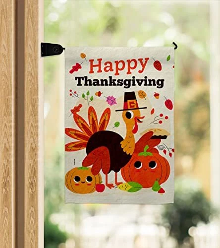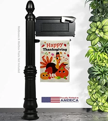 Give Thanks Turkey Garden Flag - Set Mailbox Hanger Falltime Thanksgiving Gob...