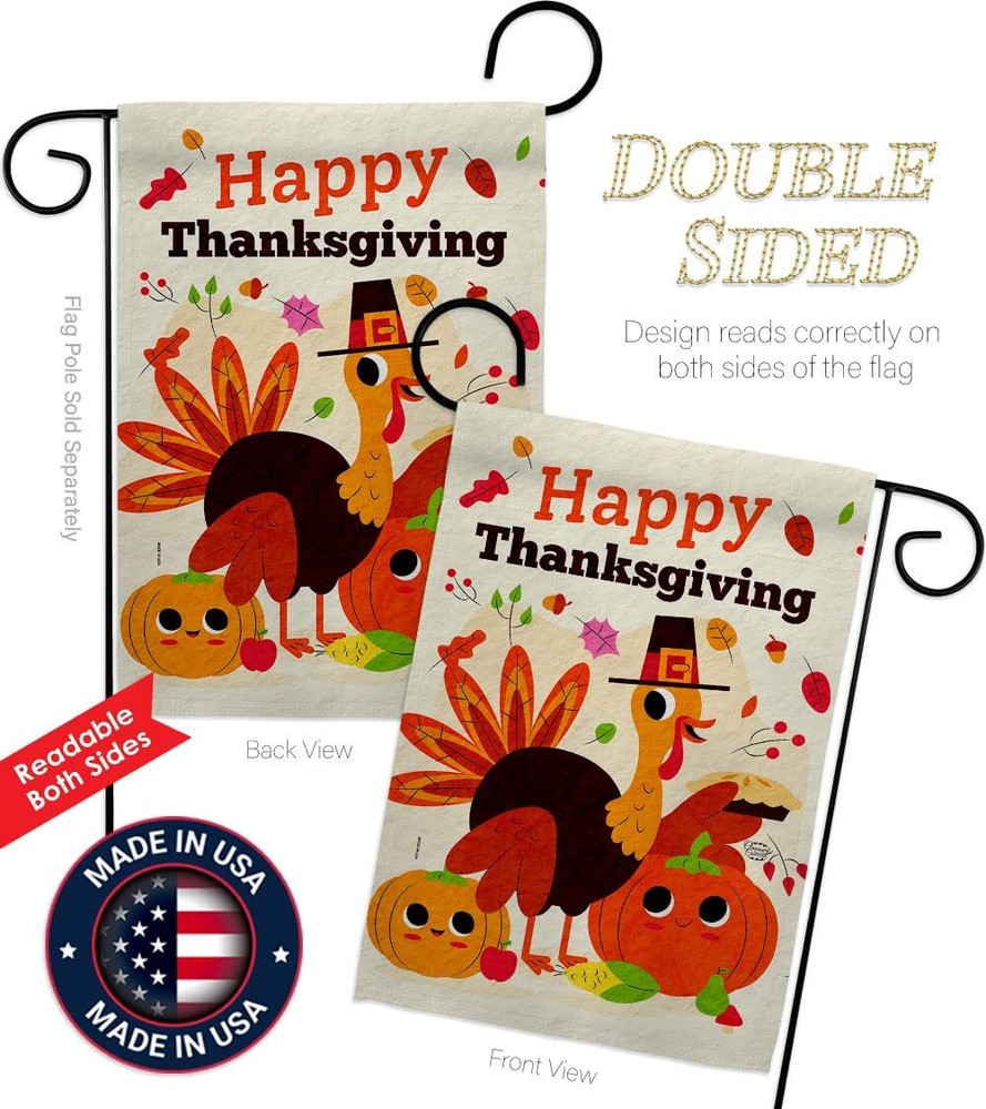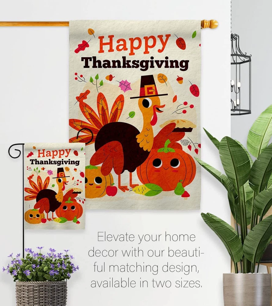 Give Thanks Turkey Garden Flag Set with Stand for Fall and Thanksgiving Decor